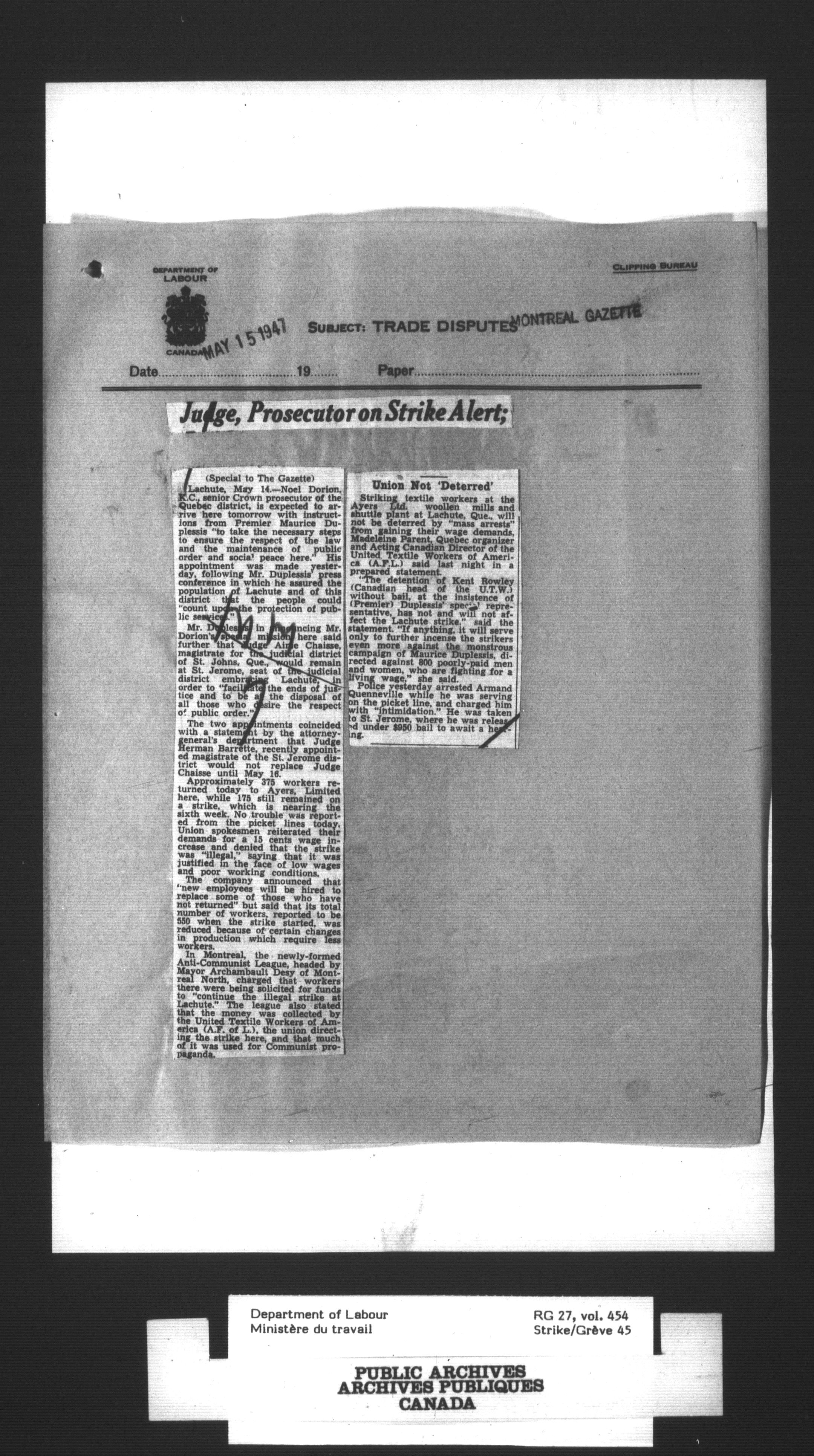 Department of Labour, Economics and Research Branch : Strikes and lockout files - 4085