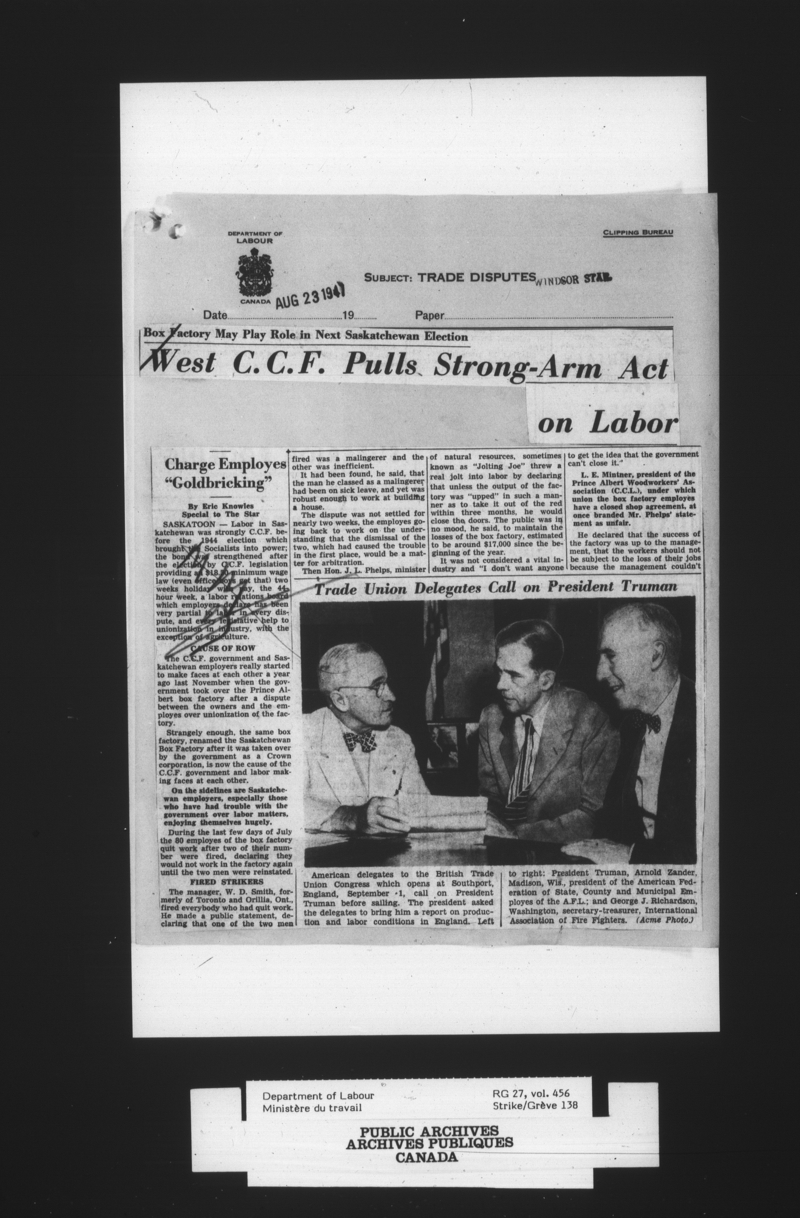 Department of Labour, Economics and Research Branch : Strikes and lockout files - 4088