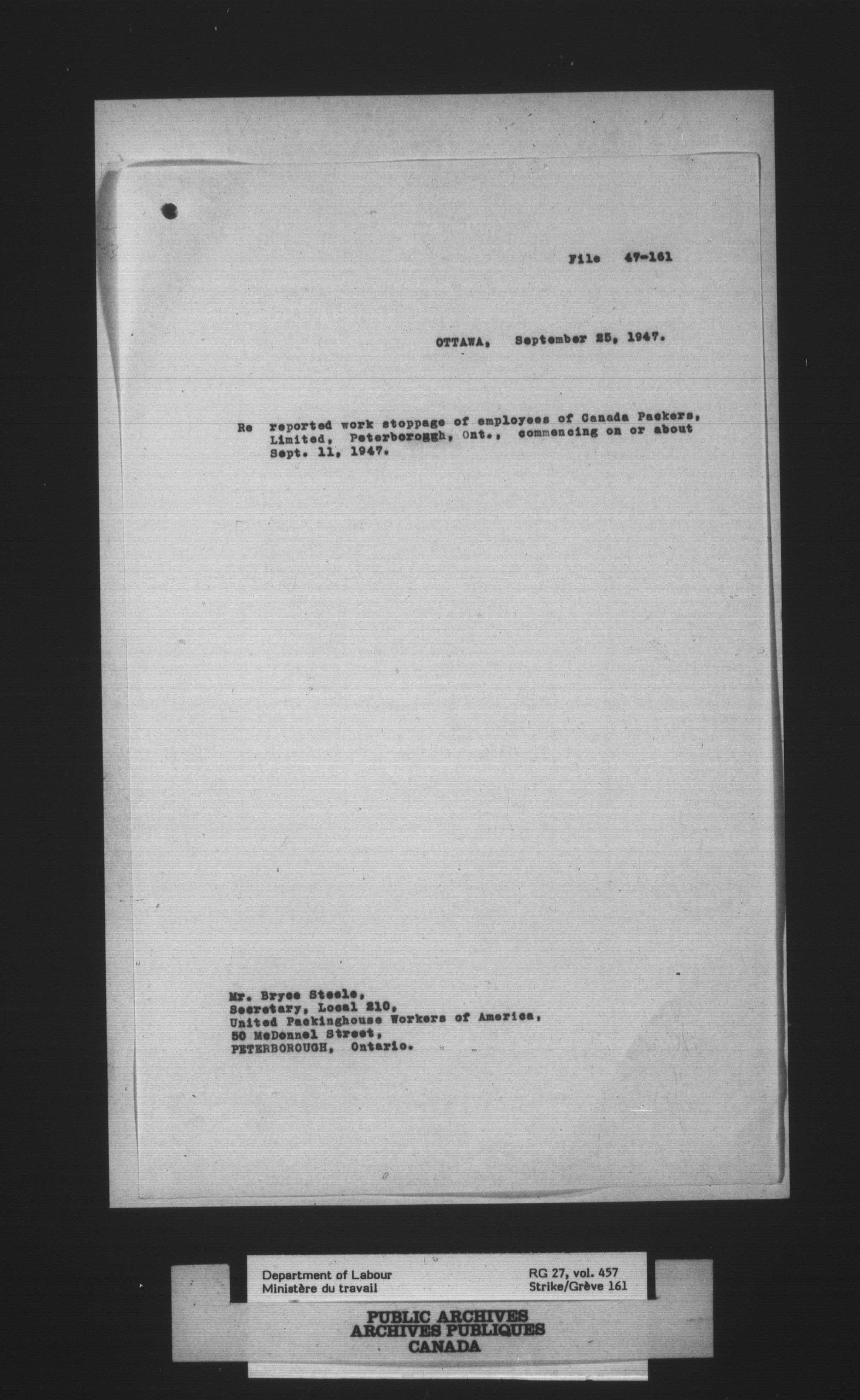 Department of Labour, Economics and Research Branch : Strikes and lockout files - 4089