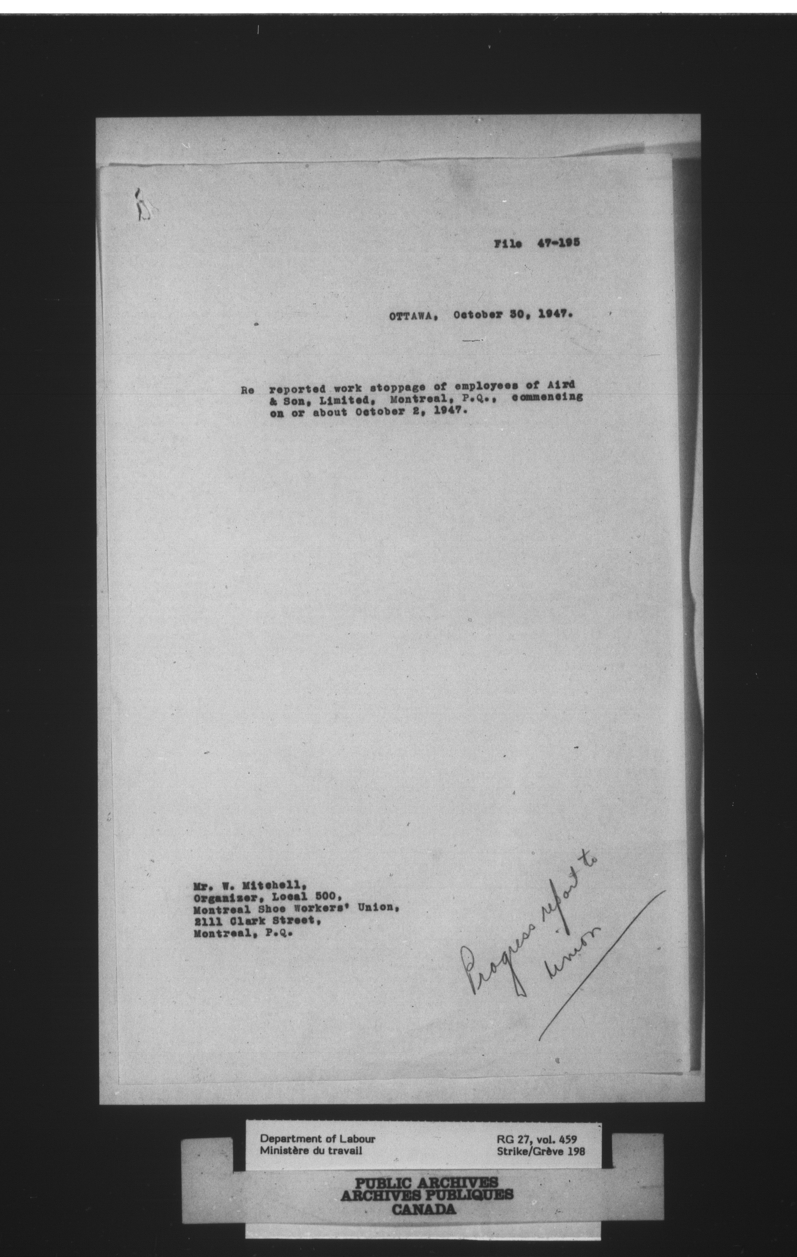 Department of Labour, Economics and Research Branch : Strikes and lockout files - 4090