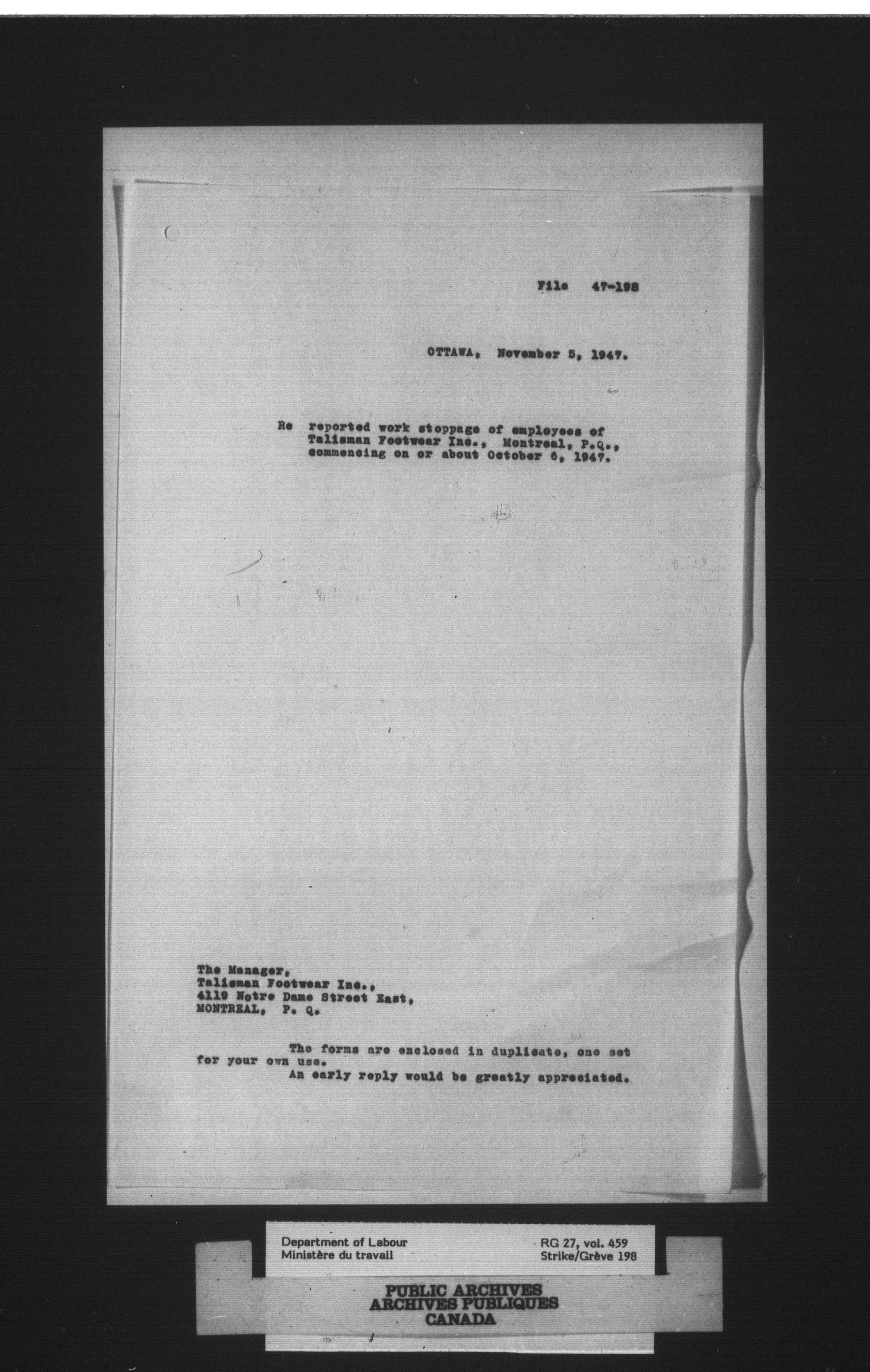 Department of Labour, Economics and Research Branch : Strikes and lockout files - 4090