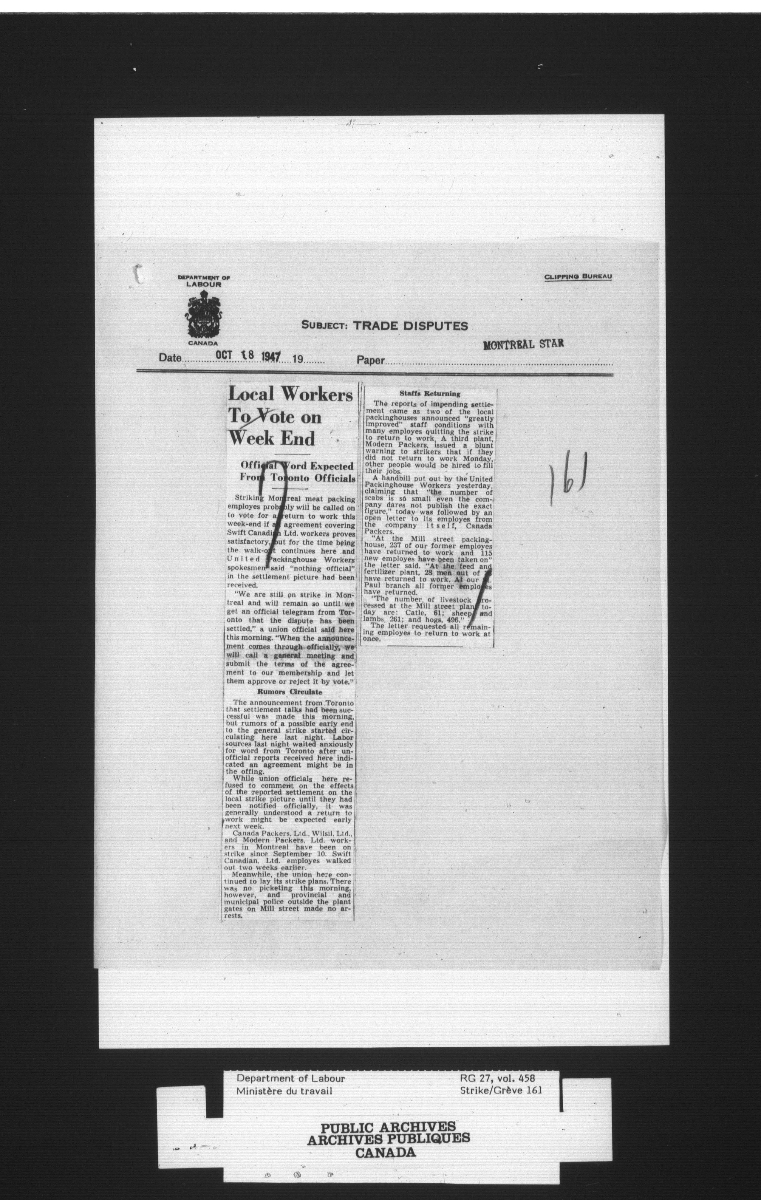 Department of Labour, Economics and Research Branch : Strikes and lockout files - 4090