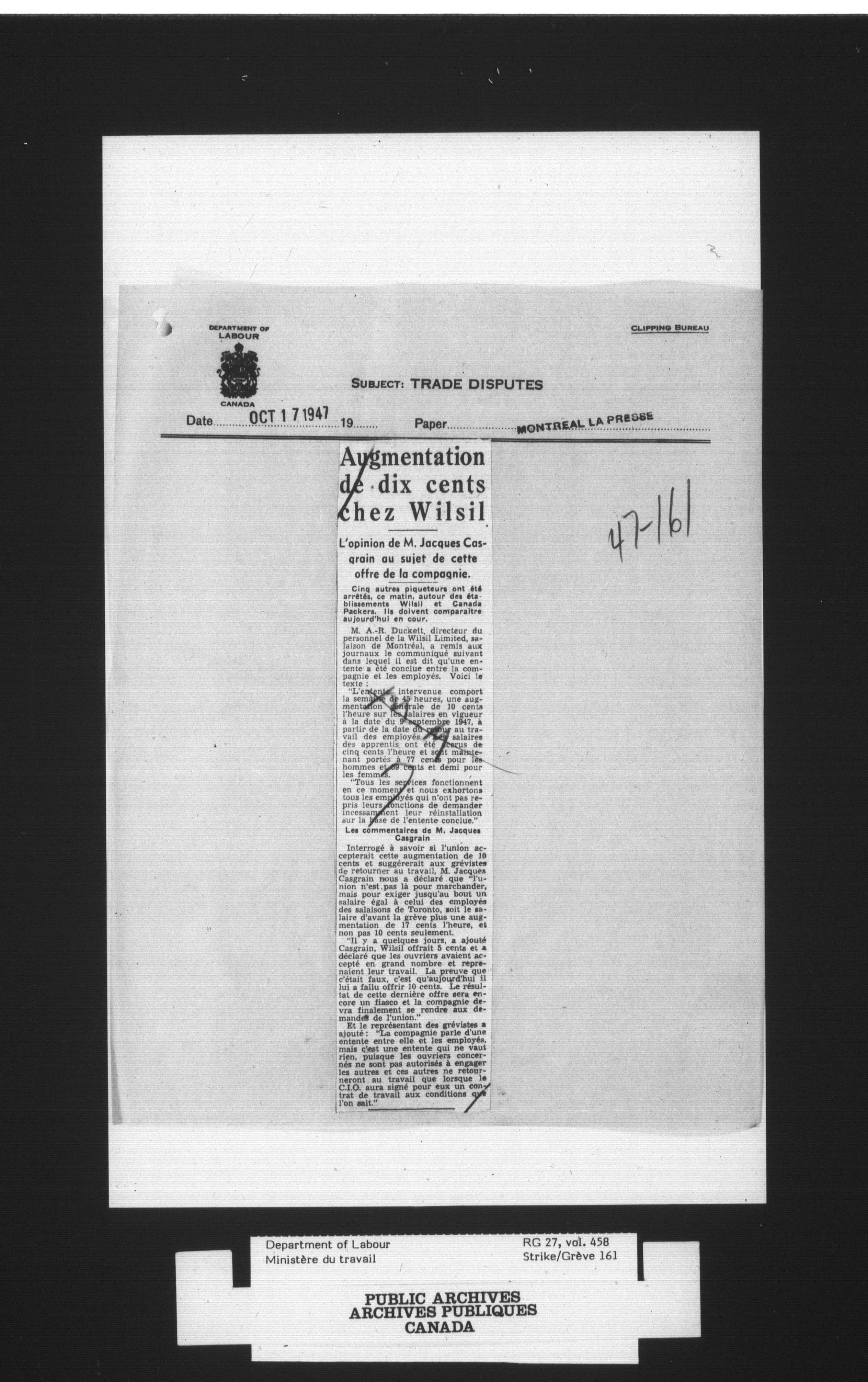 Department of Labour, Economics and Research Branch : Strikes and lockout files - 4090
