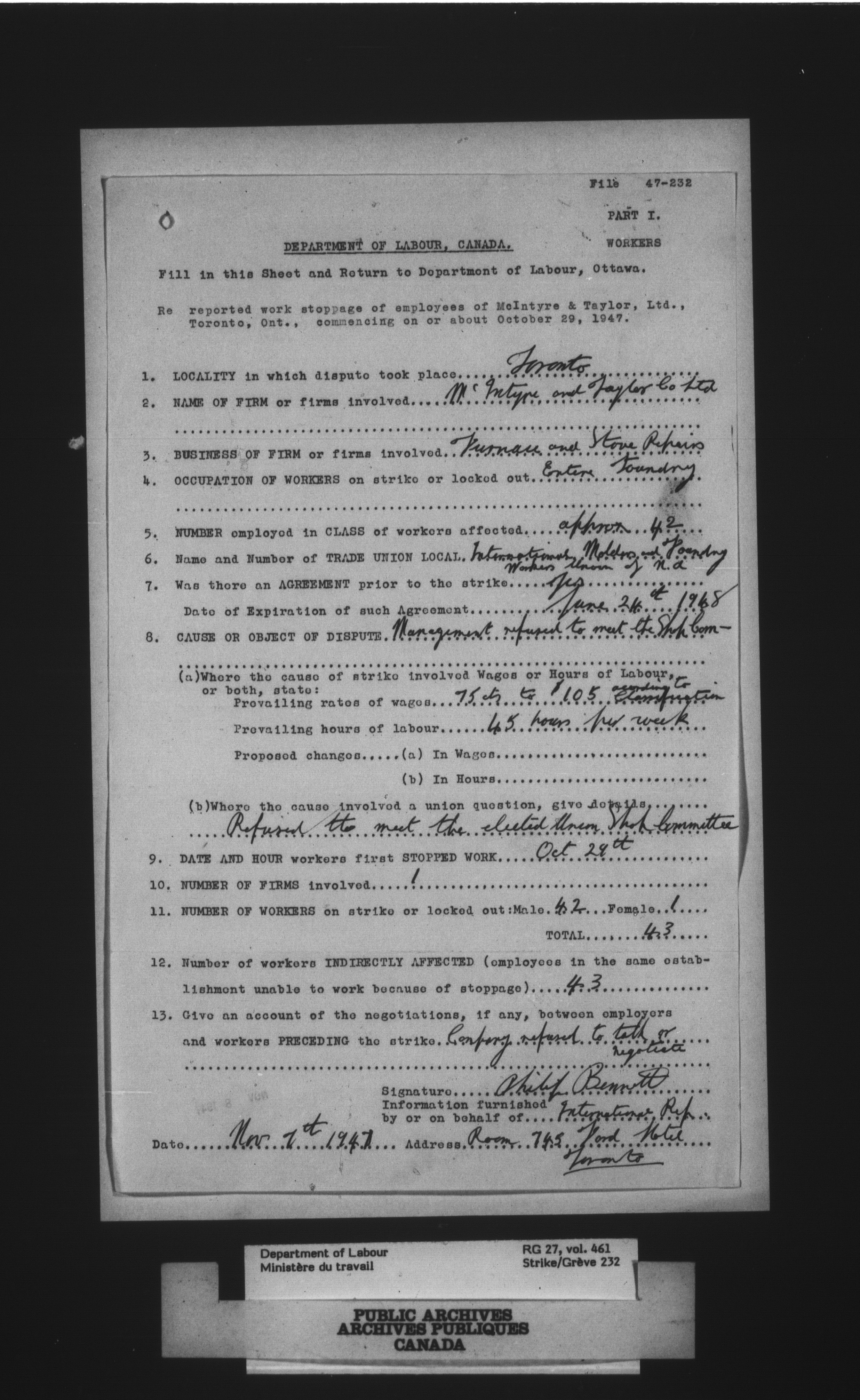 Department of Labour, Economics and Research Branch : Strikes and lockout files - 4092