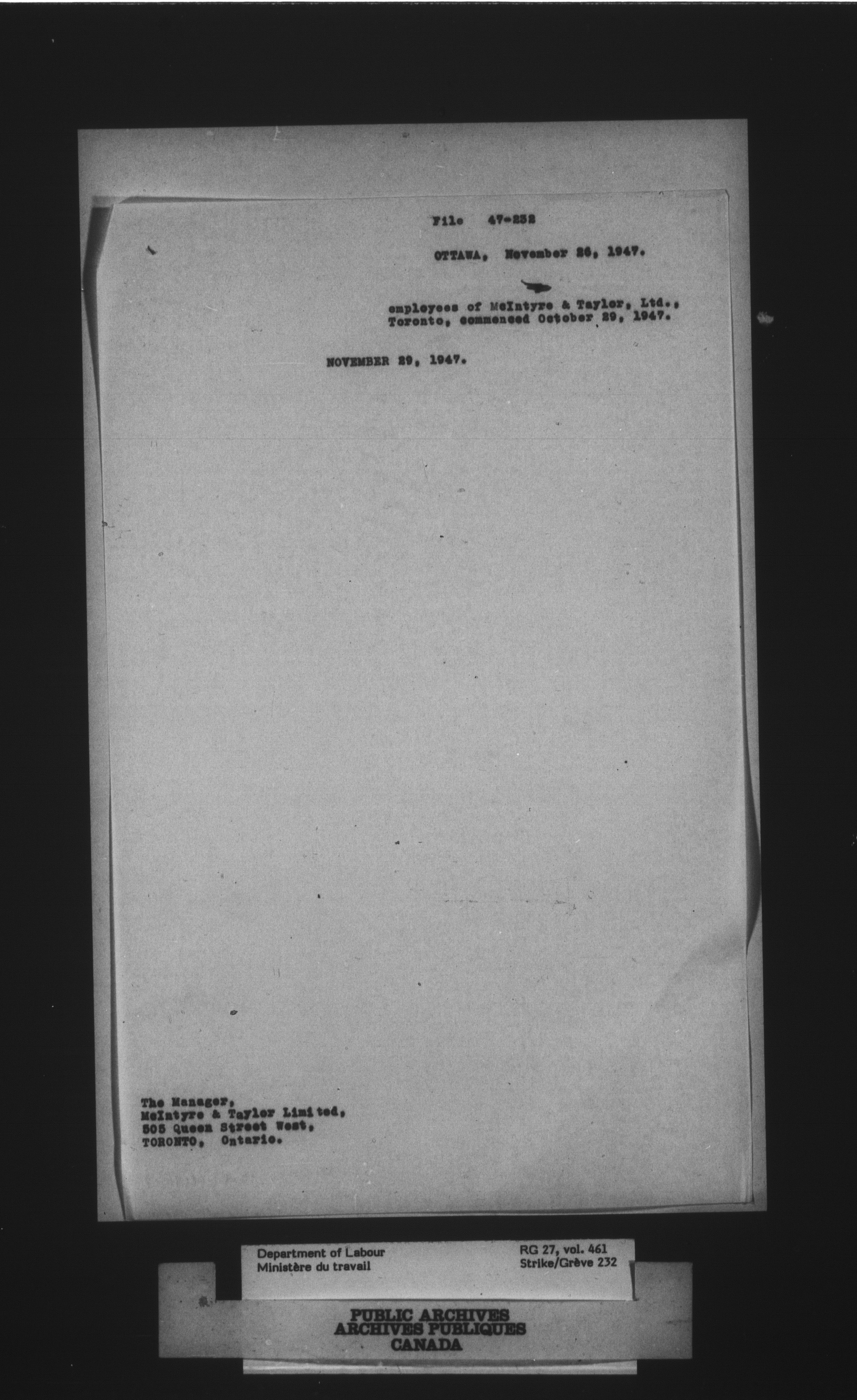 Department of Labour, Economics and Research Branch : Strikes and lockout files - 4092