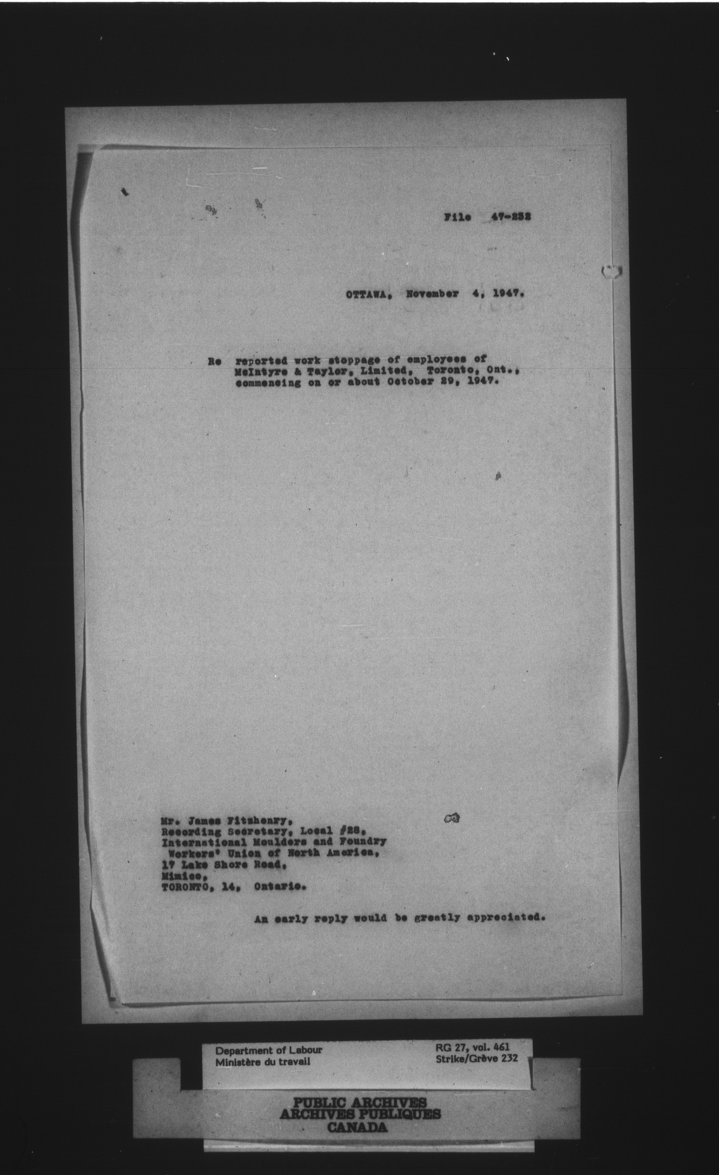Department of Labour, Economics and Research Branch : Strikes and lockout files - 4092
