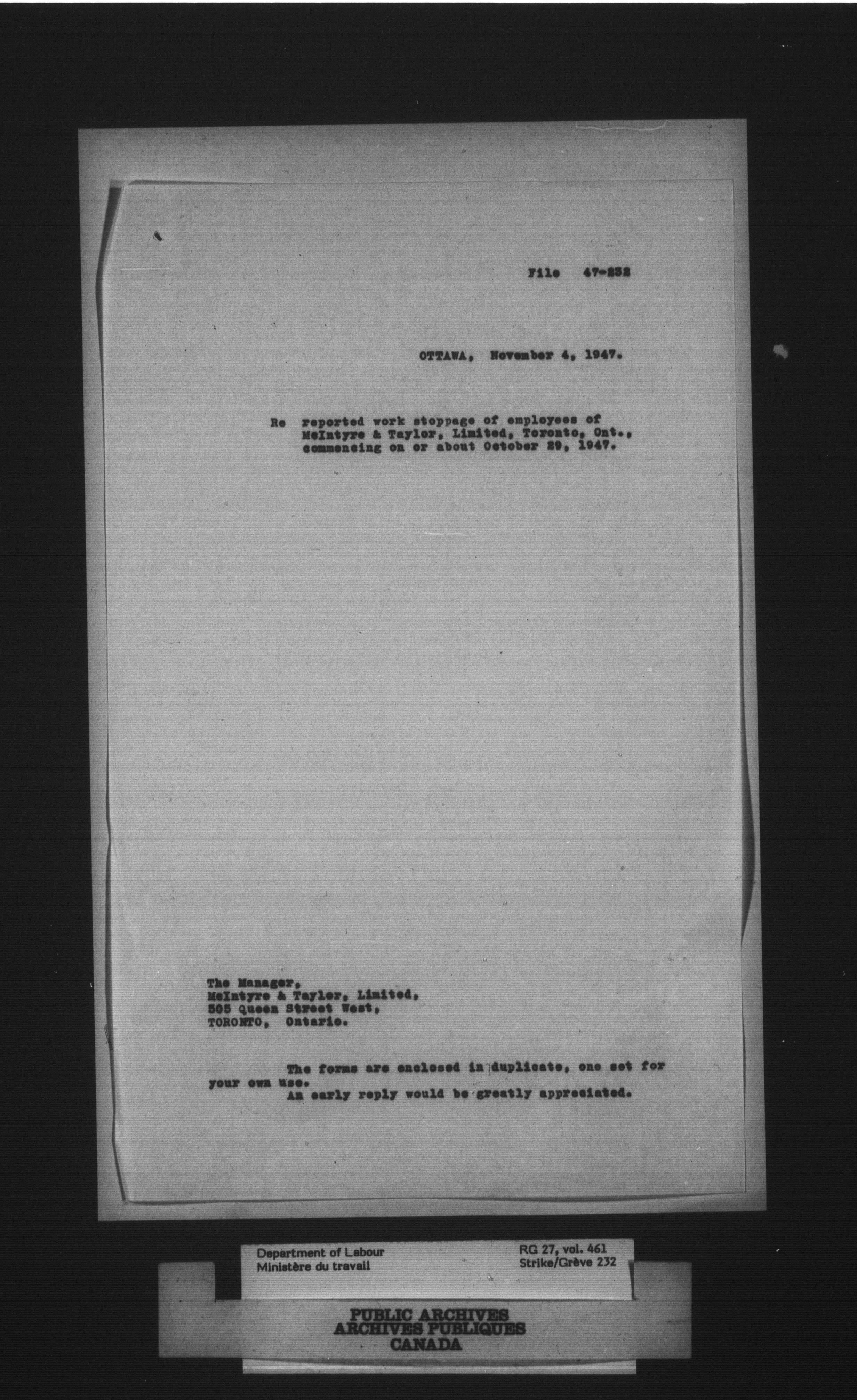 Department of Labour, Economics and Research Branch : Strikes and lockout files - 4092