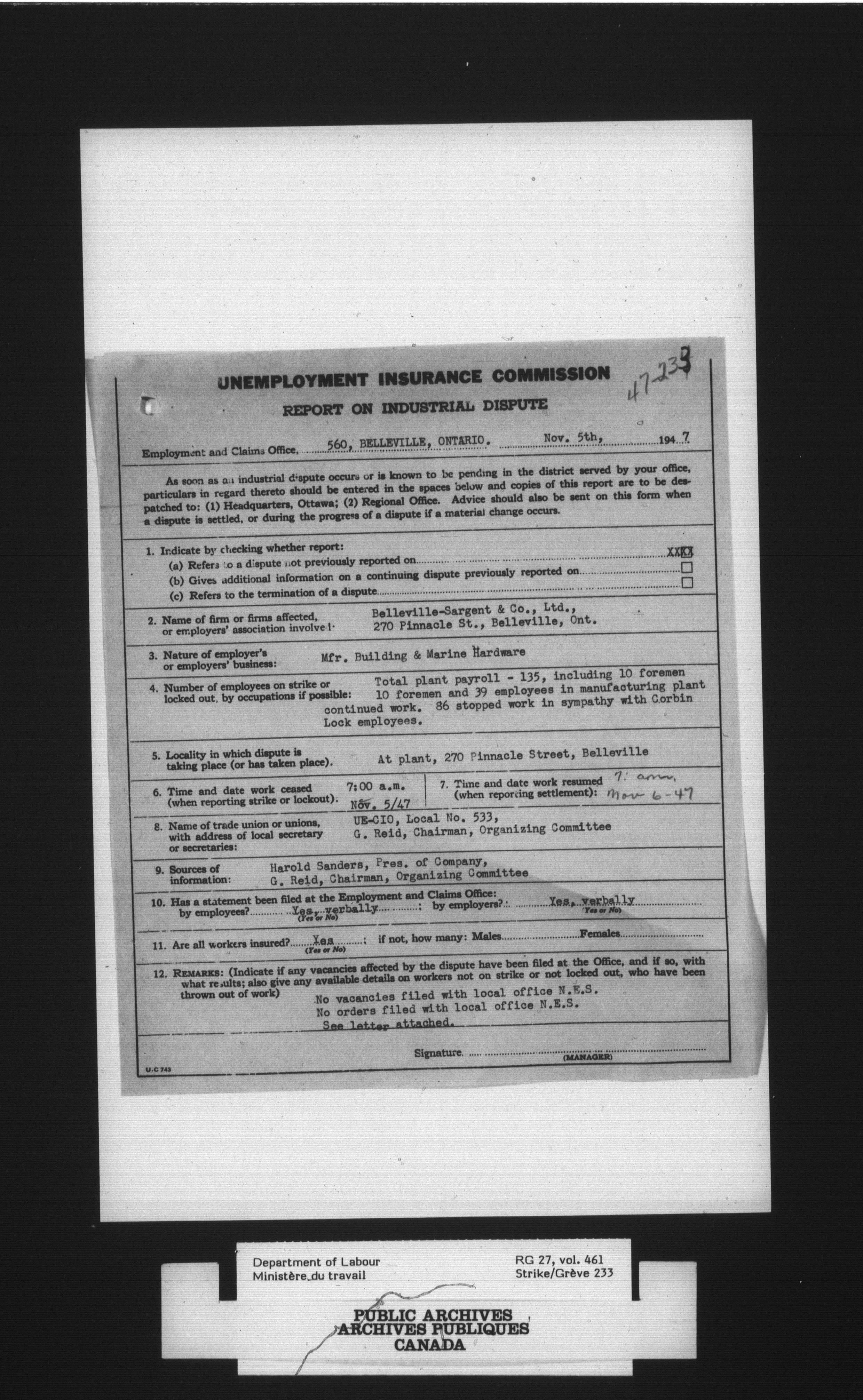 Department of Labour, Economics and Research Branch : Strikes and lockout files - 4092