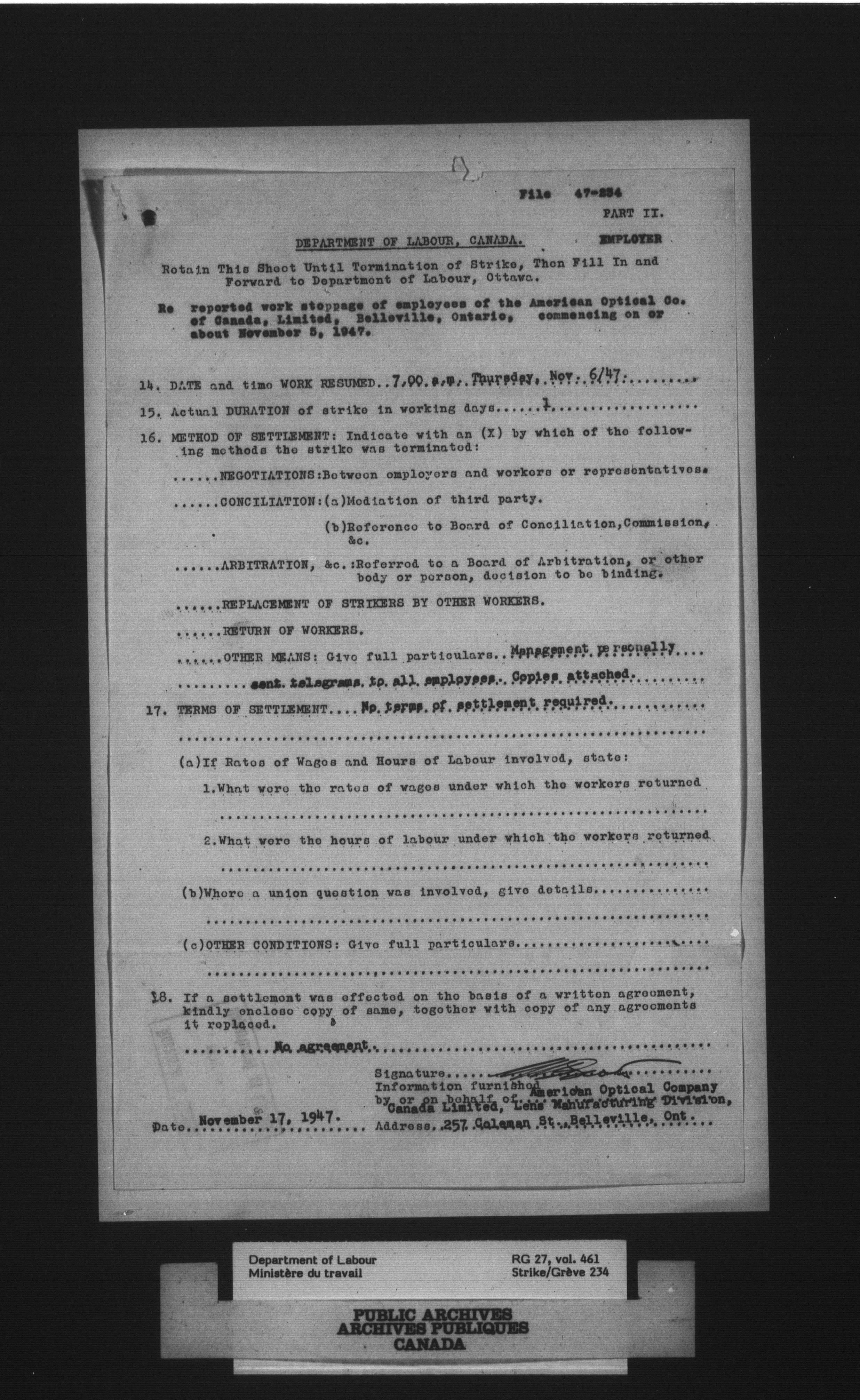 Department of Labour, Economics and Research Branch : Strikes and lockout files - 4092