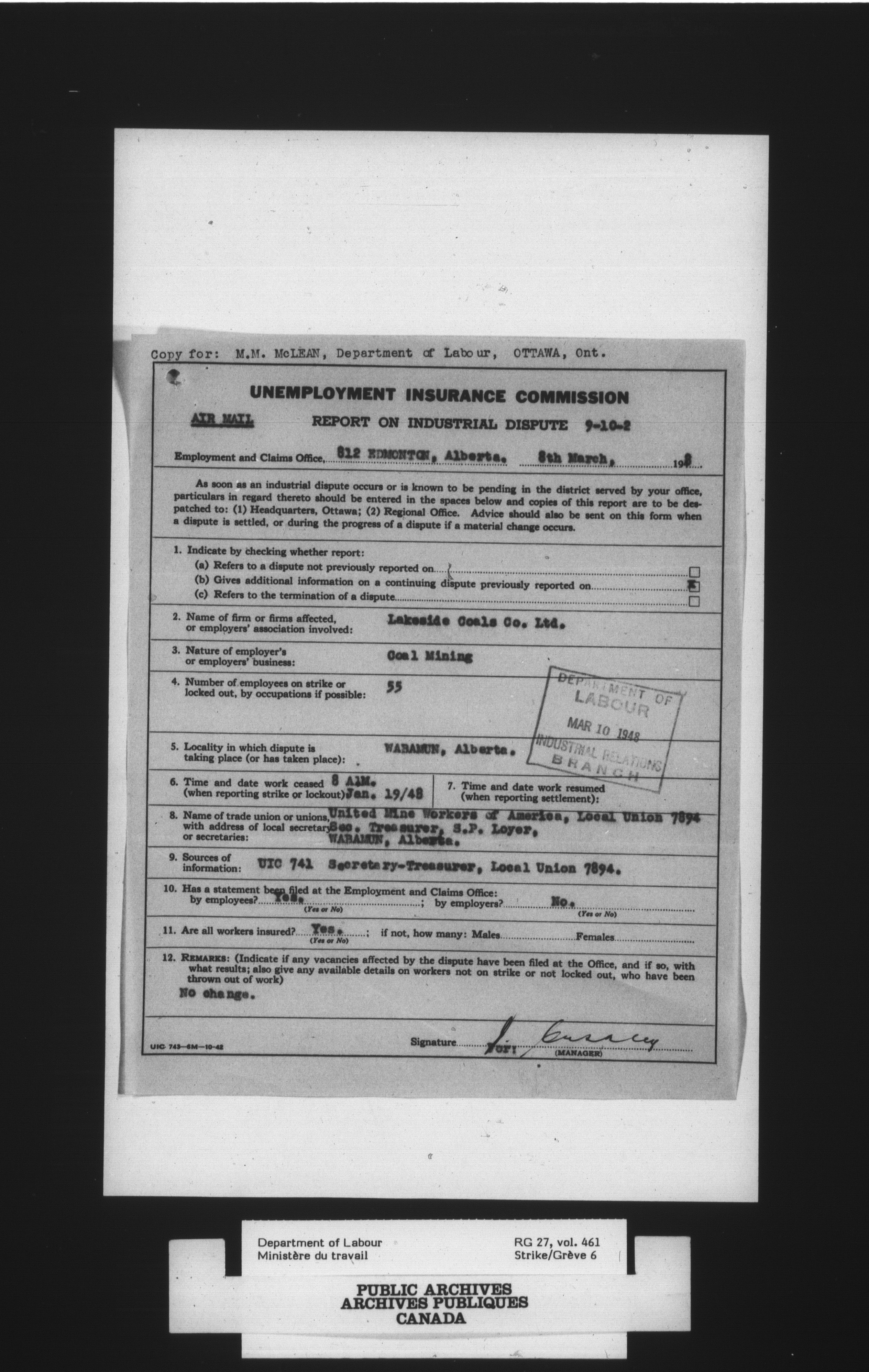 Department of Labour, Economics and Research Branch : Strikes and lockout files - 4093
