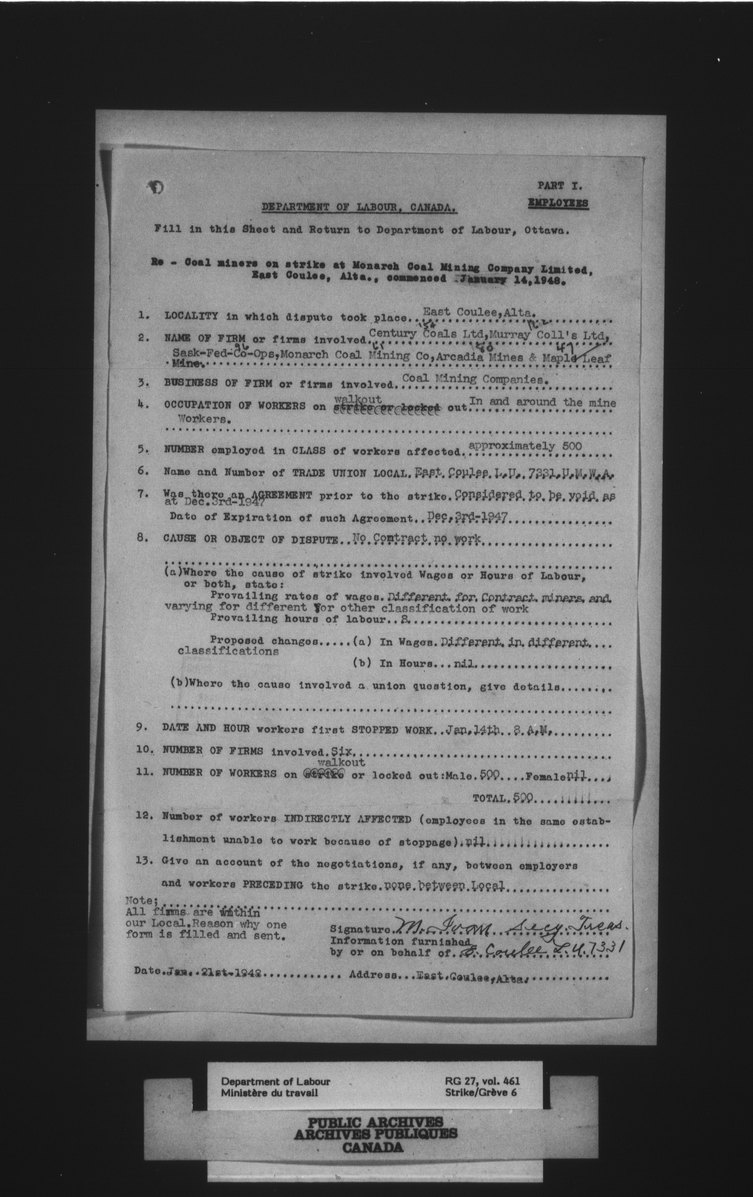 Department of Labour, Economics and Research Branch : Strikes and lockout files - 4093