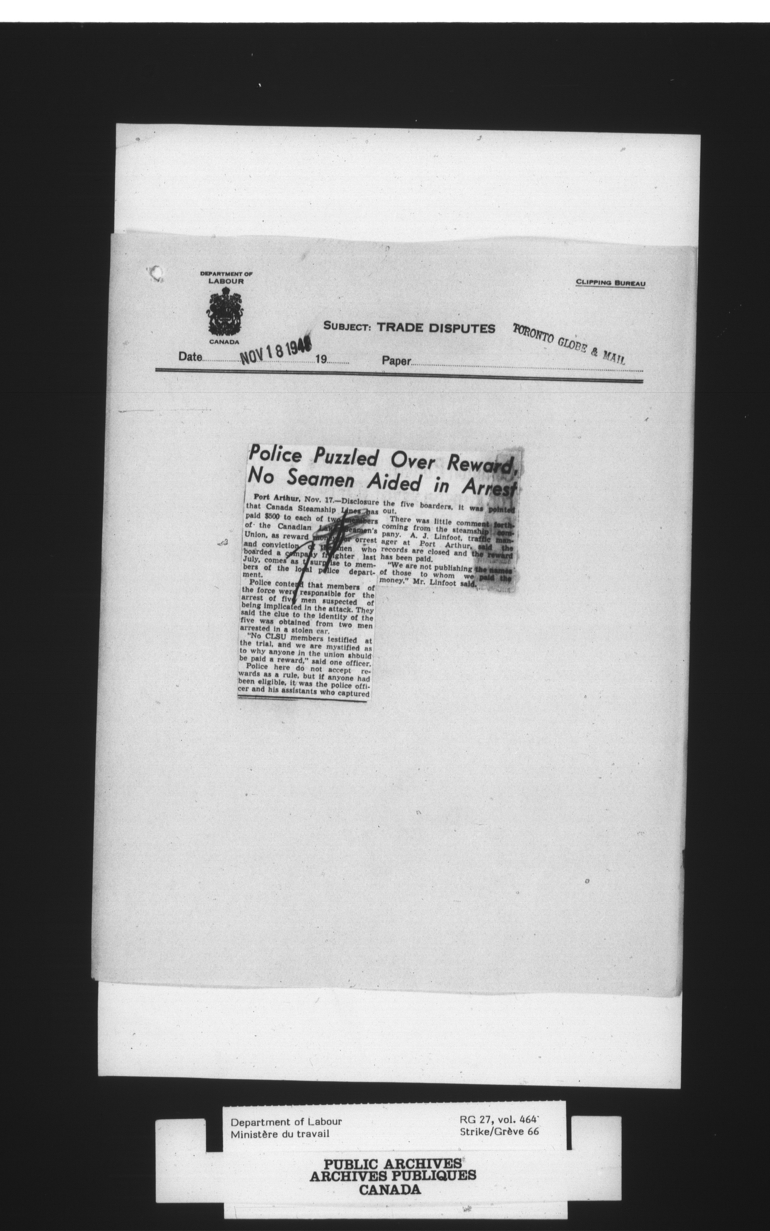Department of Labour, Economics and Research Branch : Strikes and lockout files - 4095