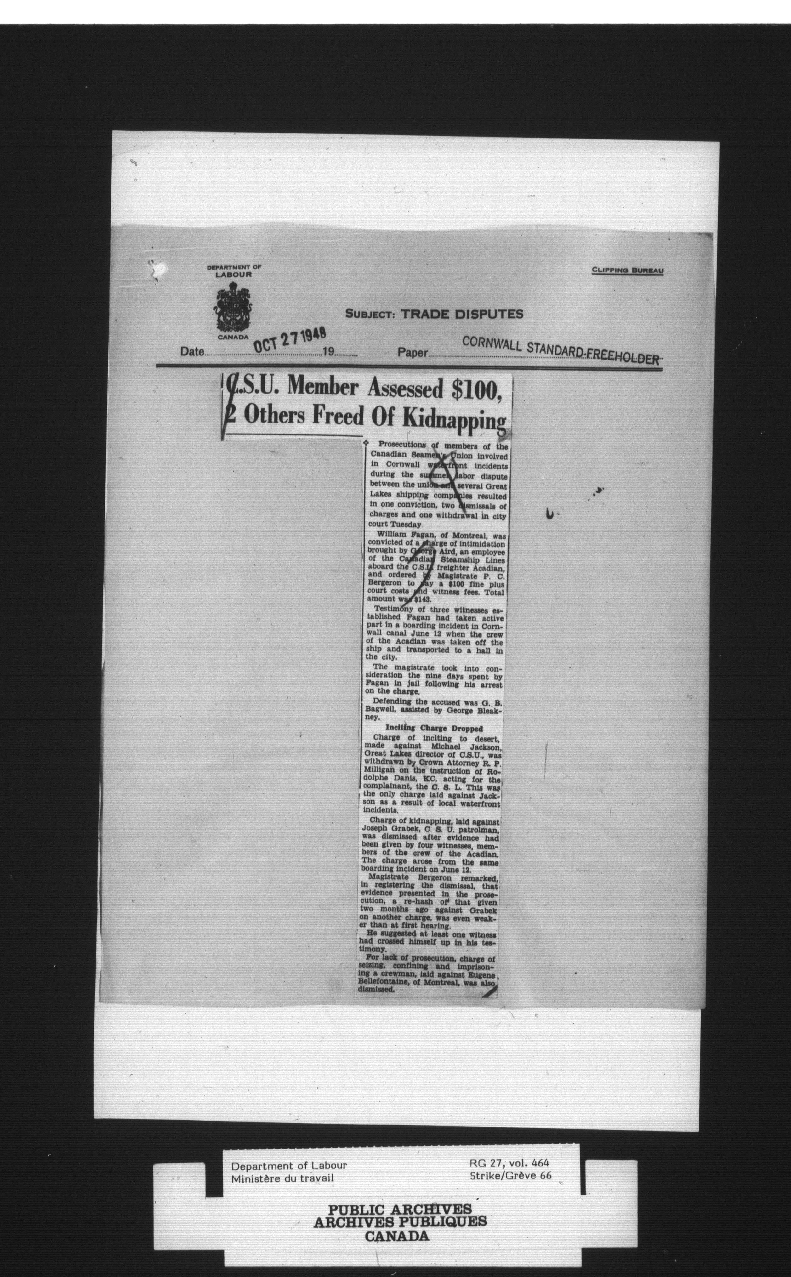 Department of Labour, Economics and Research Branch : Strikes and lockout files - 4095