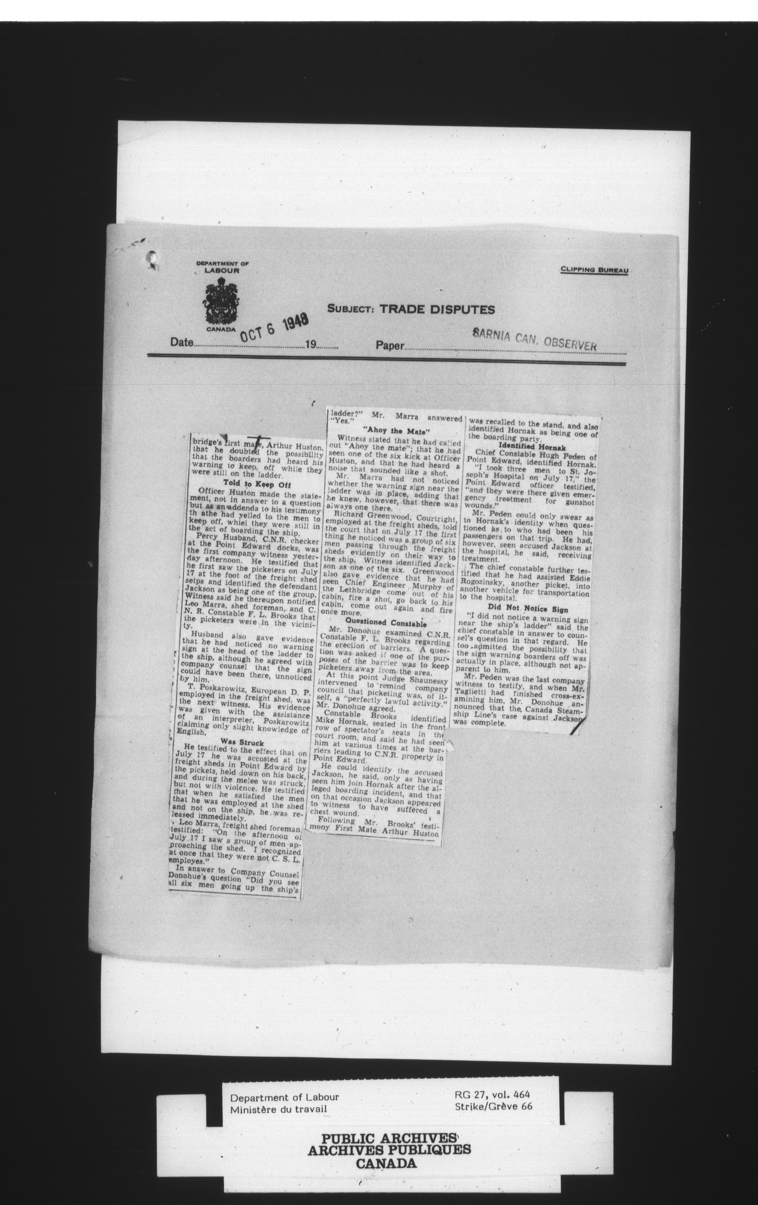 Department of Labour, Economics and Research Branch : Strikes and lockout files - 4095