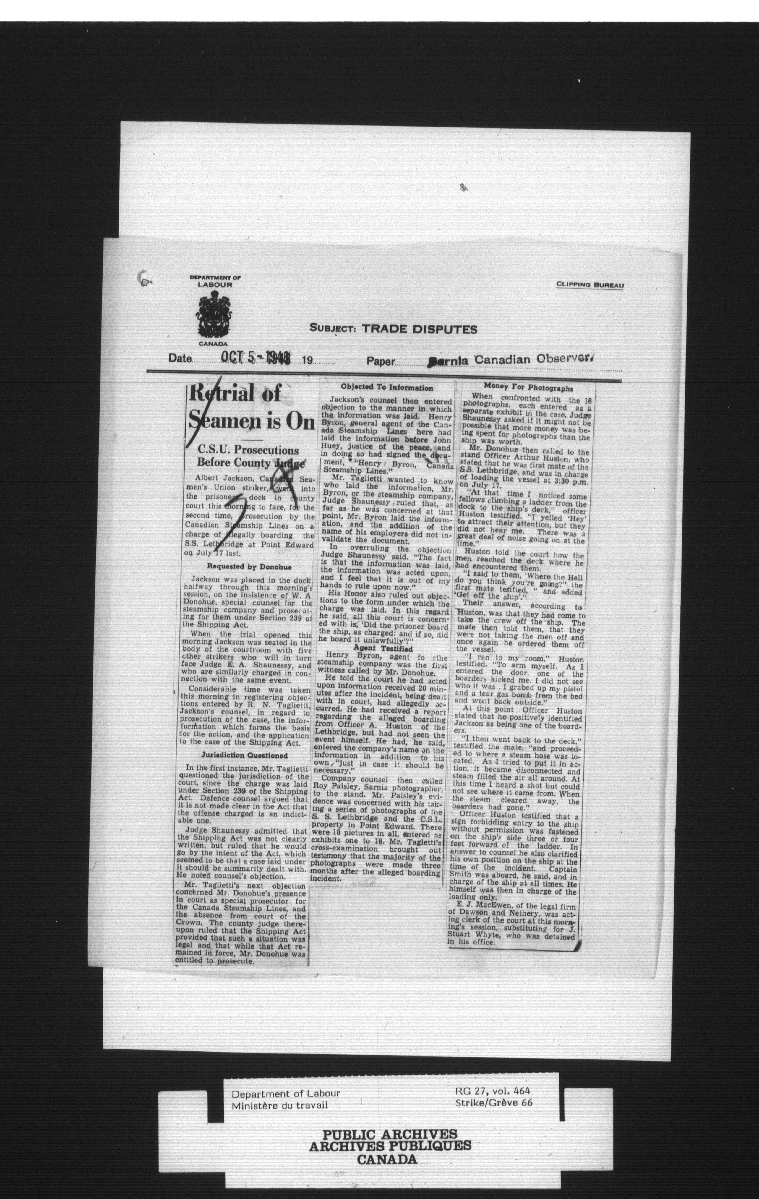 Department of Labour, Economics and Research Branch : Strikes and lockout files - 4095