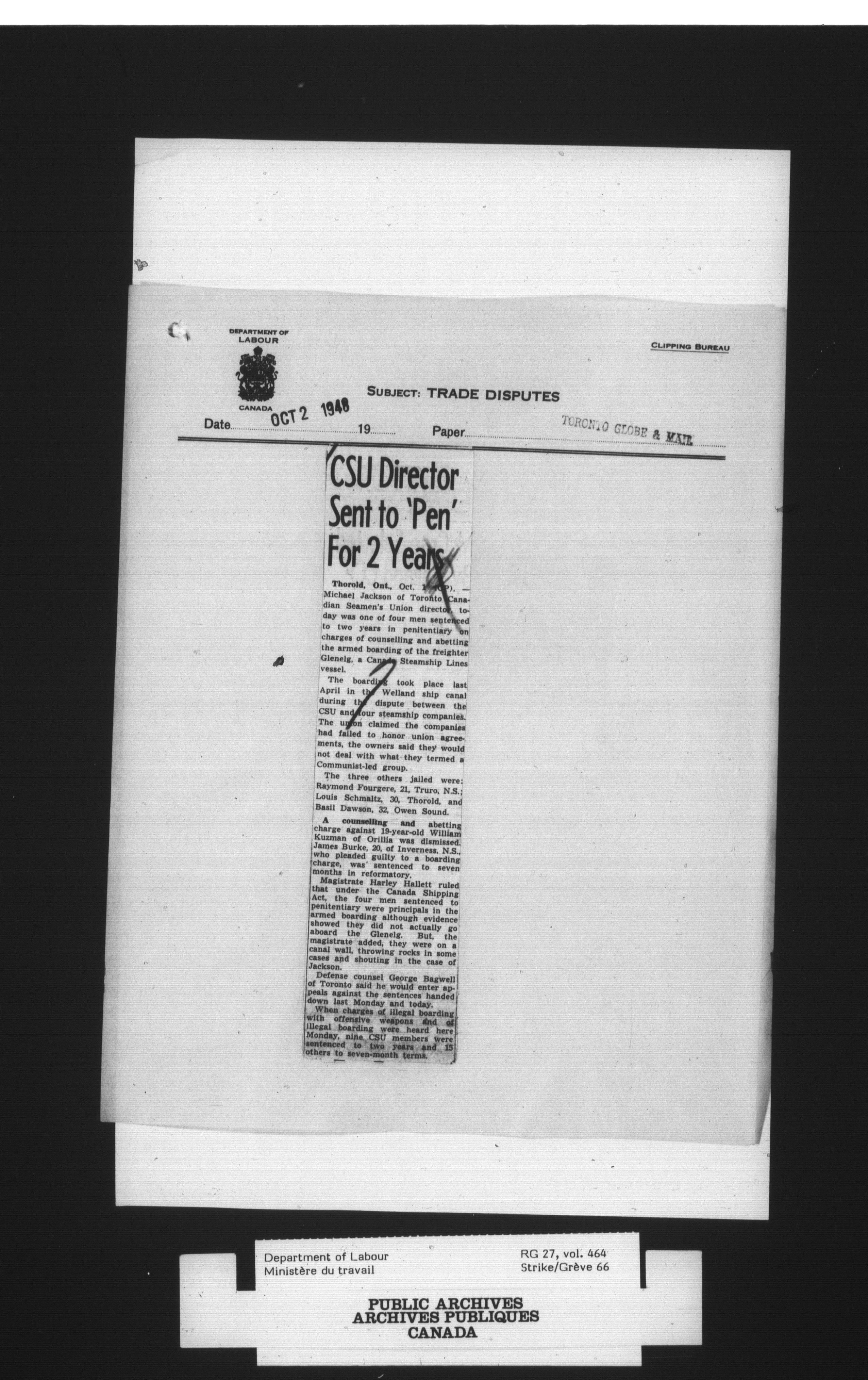 Department of Labour, Economics and Research Branch : Strikes and lockout files - 4095