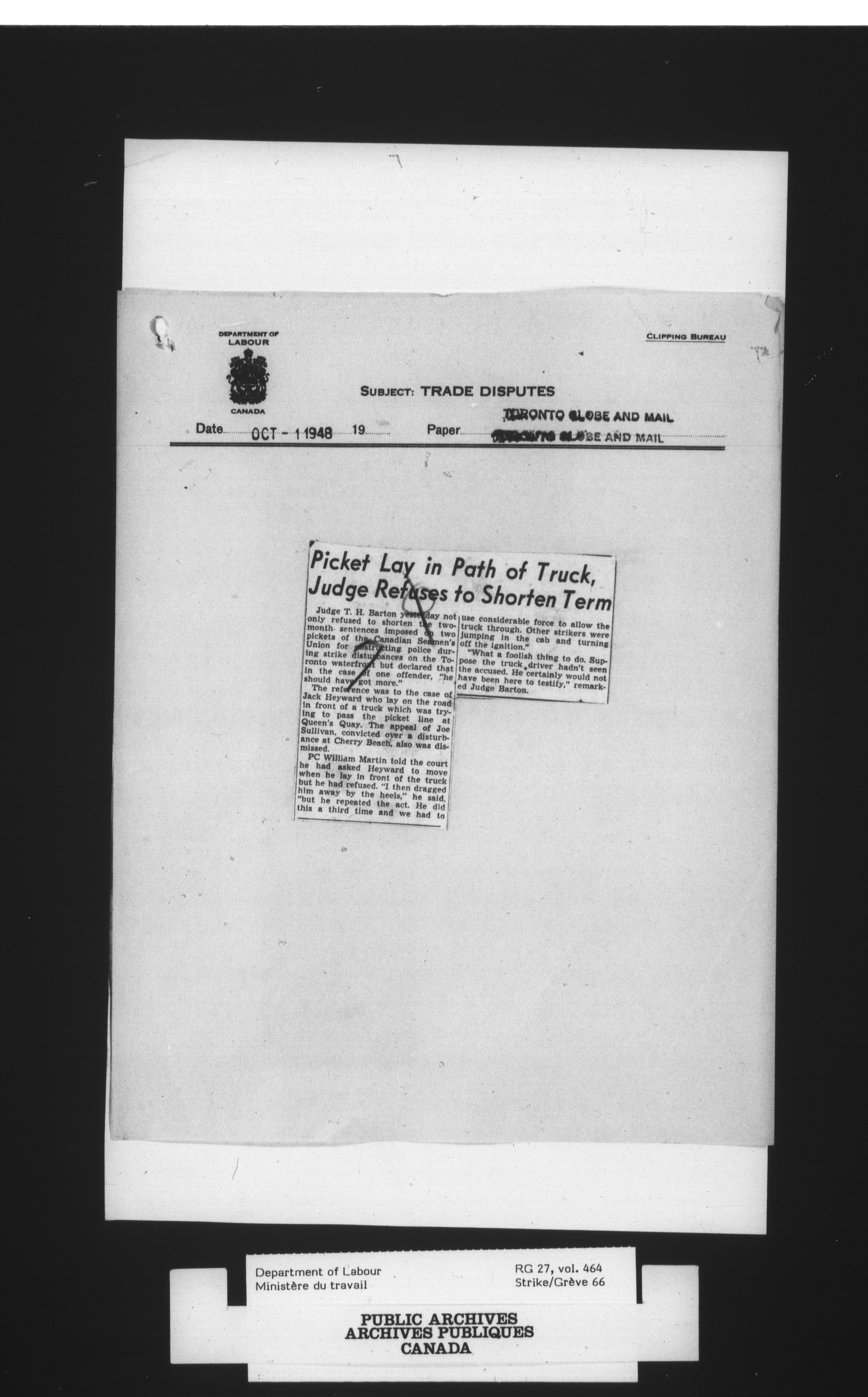 Department of Labour, Economics and Research Branch : Strikes and lockout files - 4095