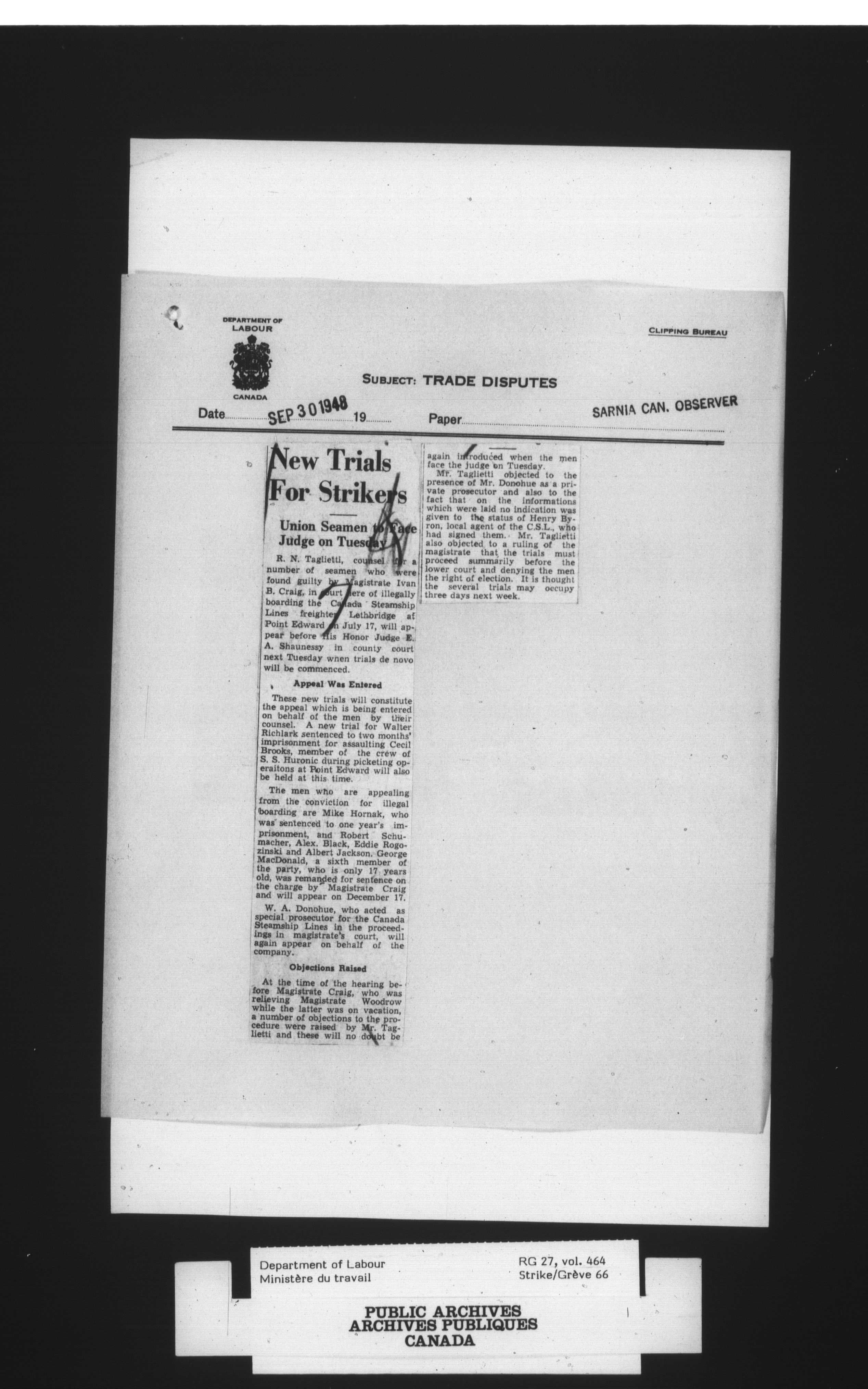 Department of Labour, Economics and Research Branch : Strikes and lockout files - 4095