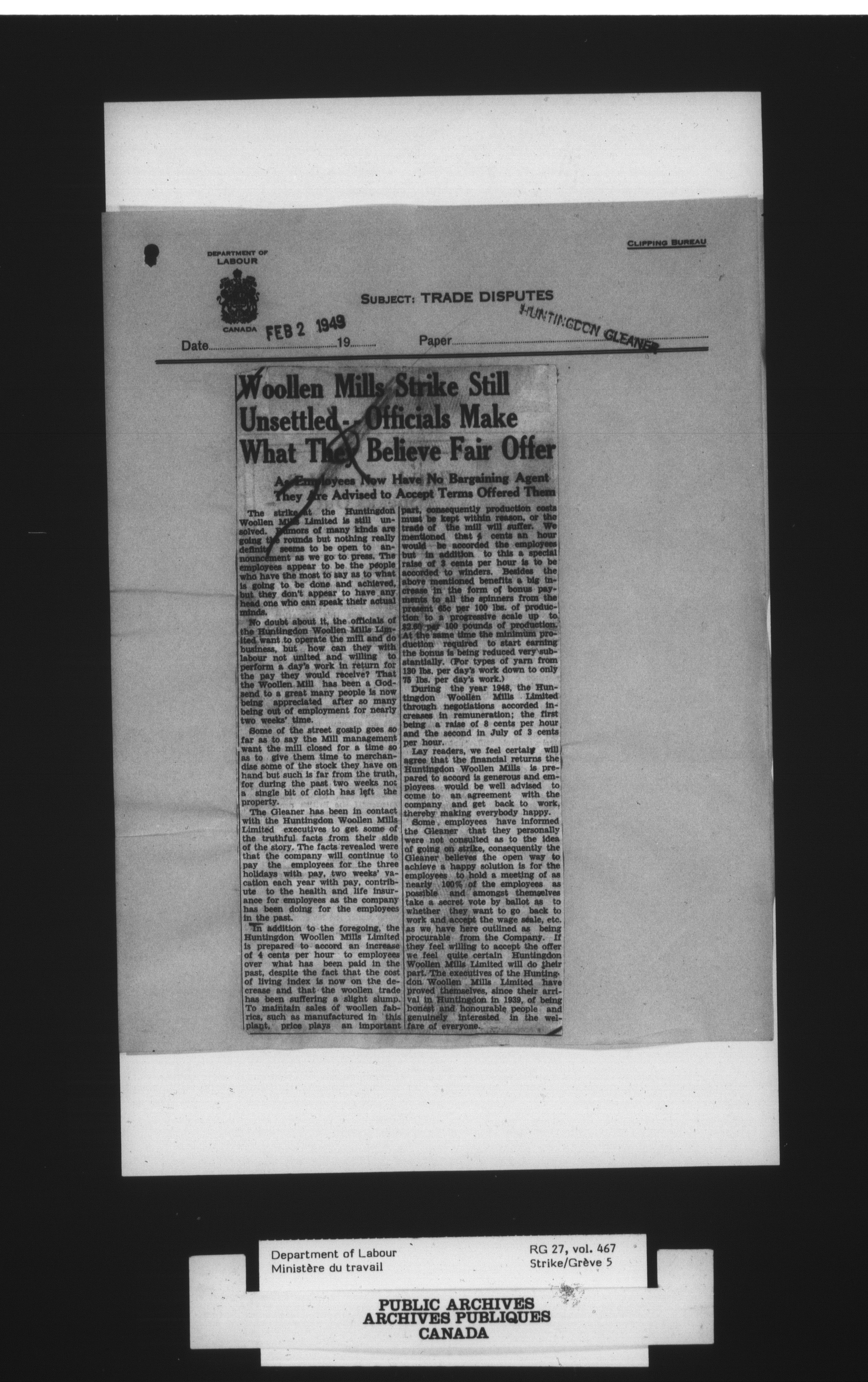 Department of Labour, Economics and Research Branch : Strikes and lockout files - 4097