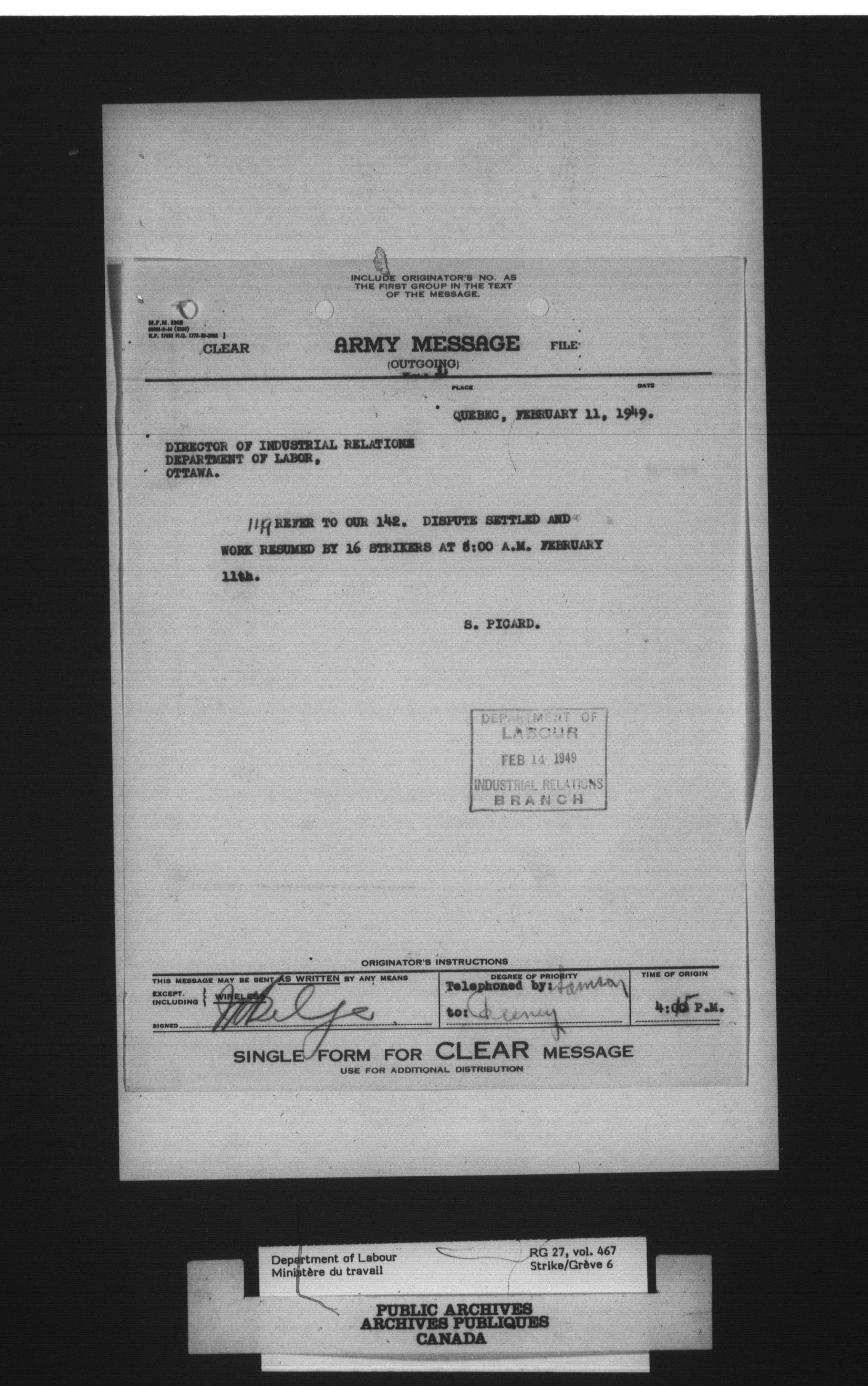 Department of Labour, Economics and Research Branch : Strikes and lockout files - 4097