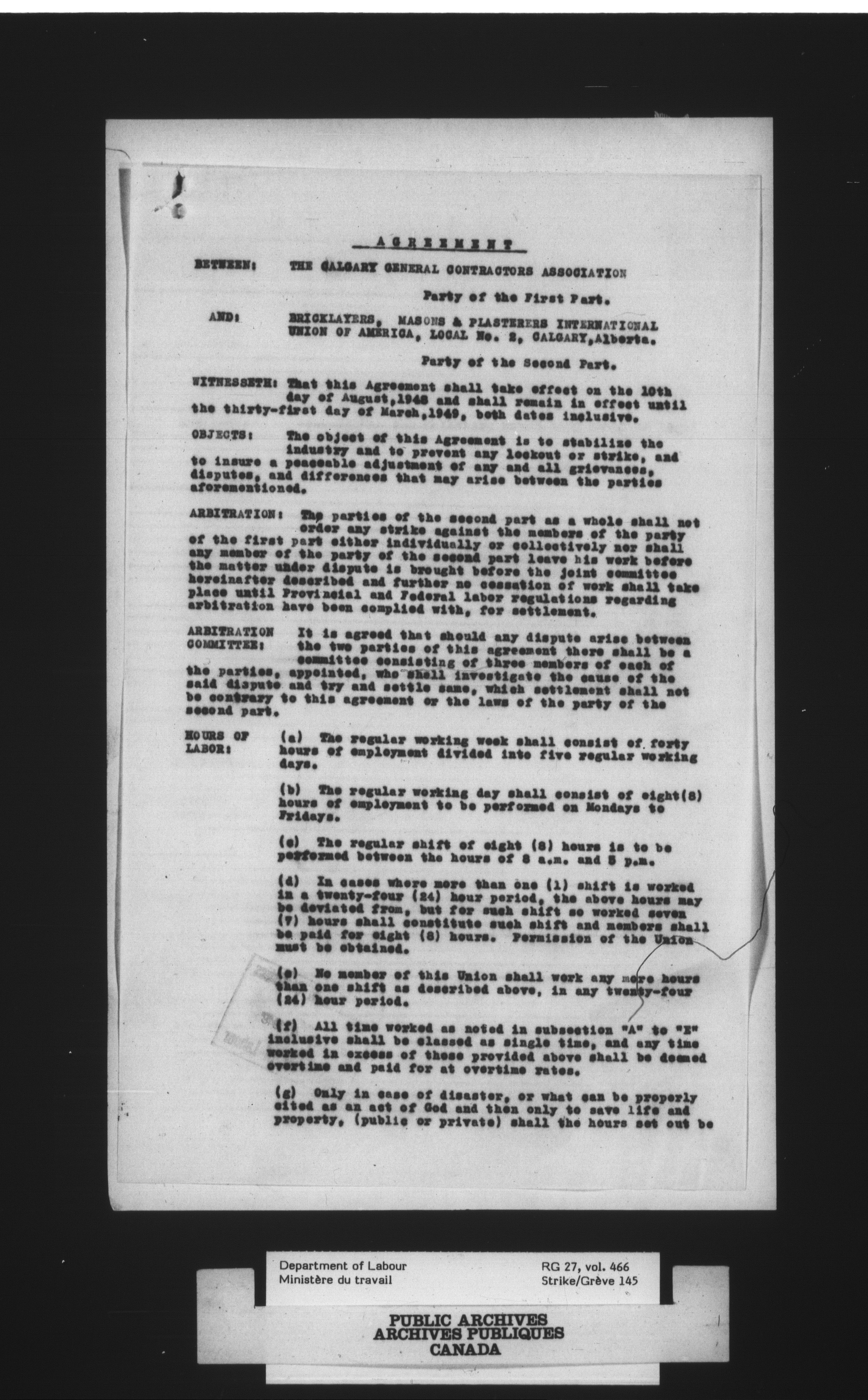 Department of Labour, Economics and Research Branch : Strikes and lockout files - 4097