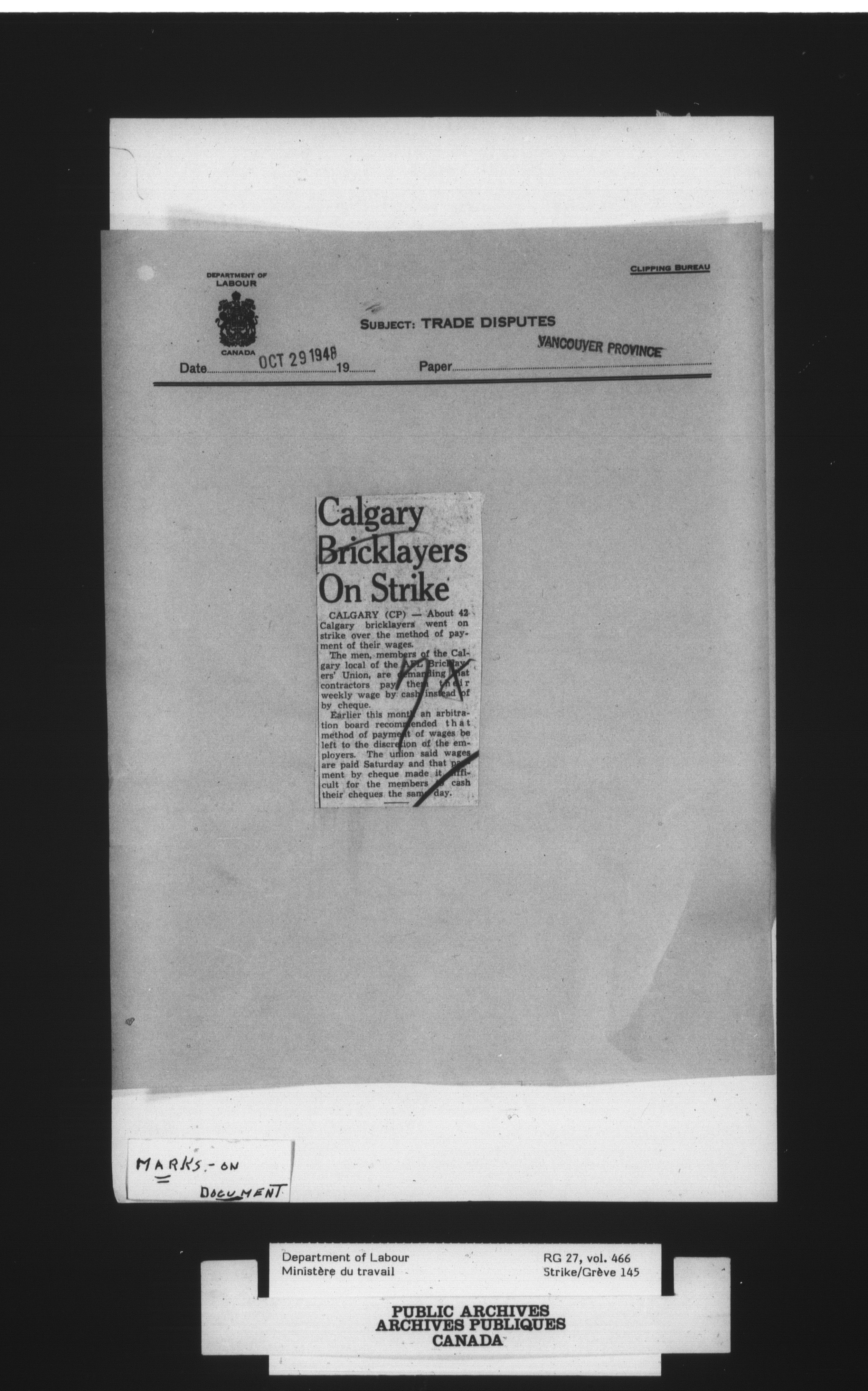 Department of Labour, Economics and Research Branch : Strikes and lockout files - 4097