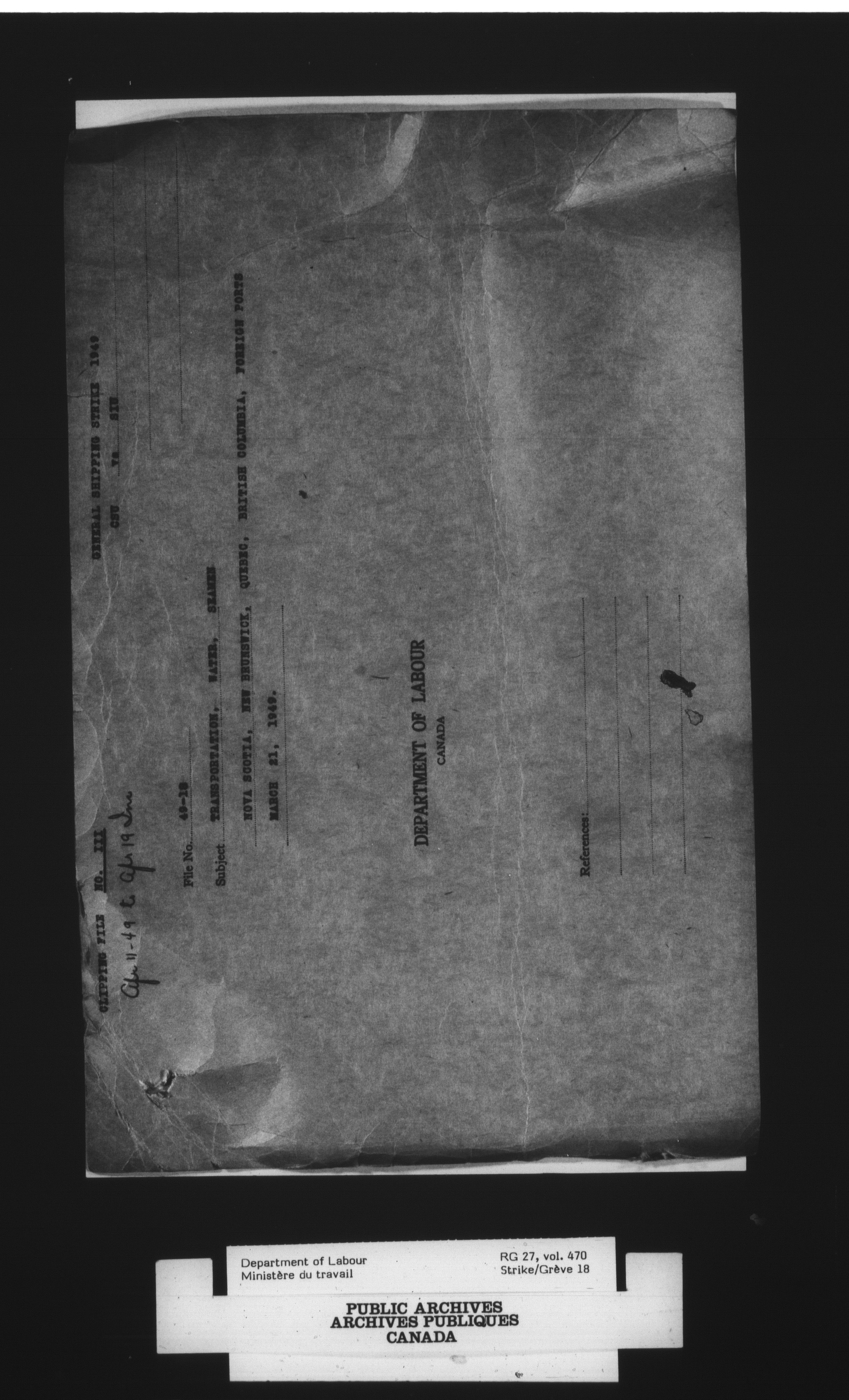 Department of Labour, Economics and Research Branch : Strikes and lockout files - 4099
