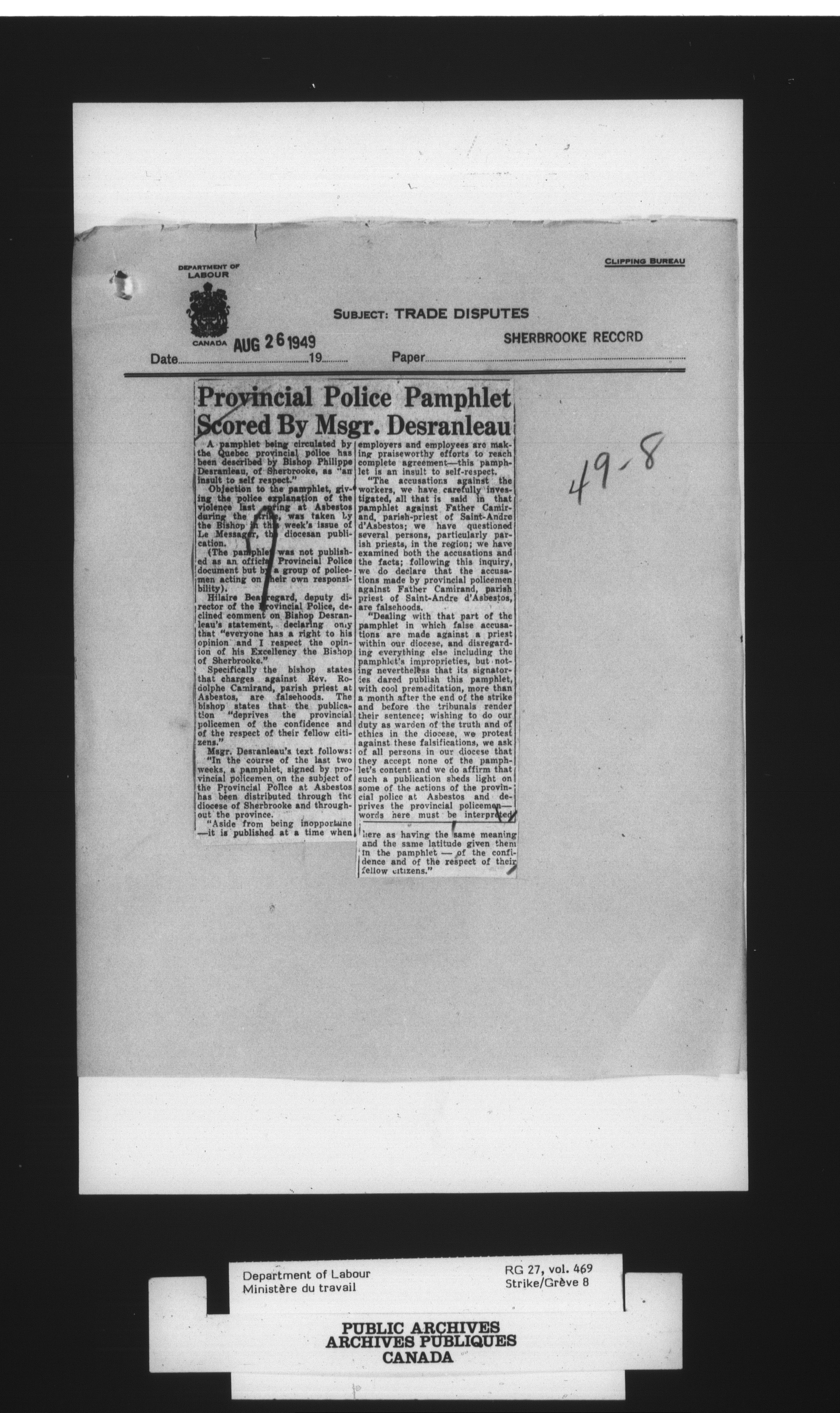 Department of Labour, Economics and Research Branch : Strikes and lockout files - 4099