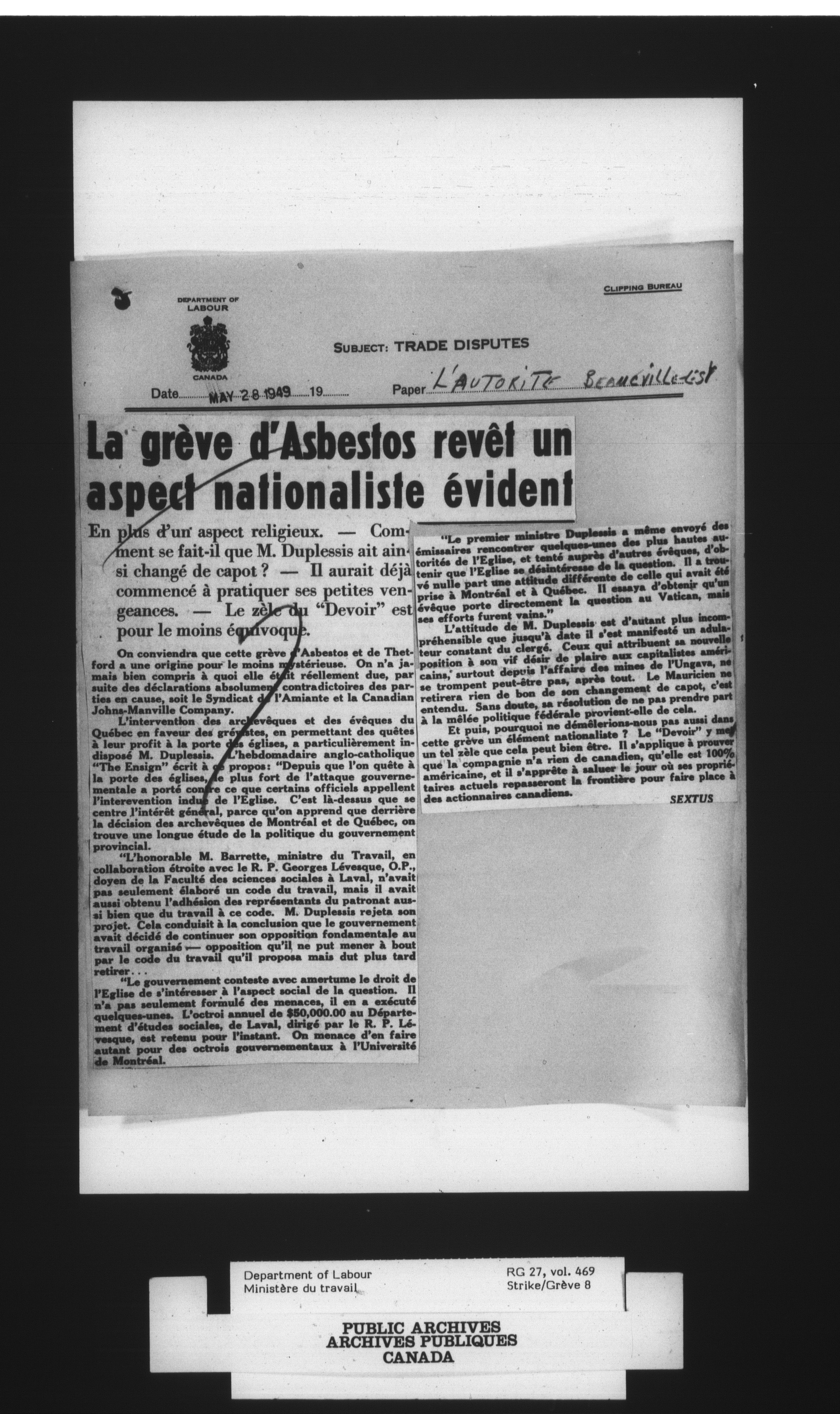 Department of Labour, Economics and Research Branch : Strikes and lockout files - 4099