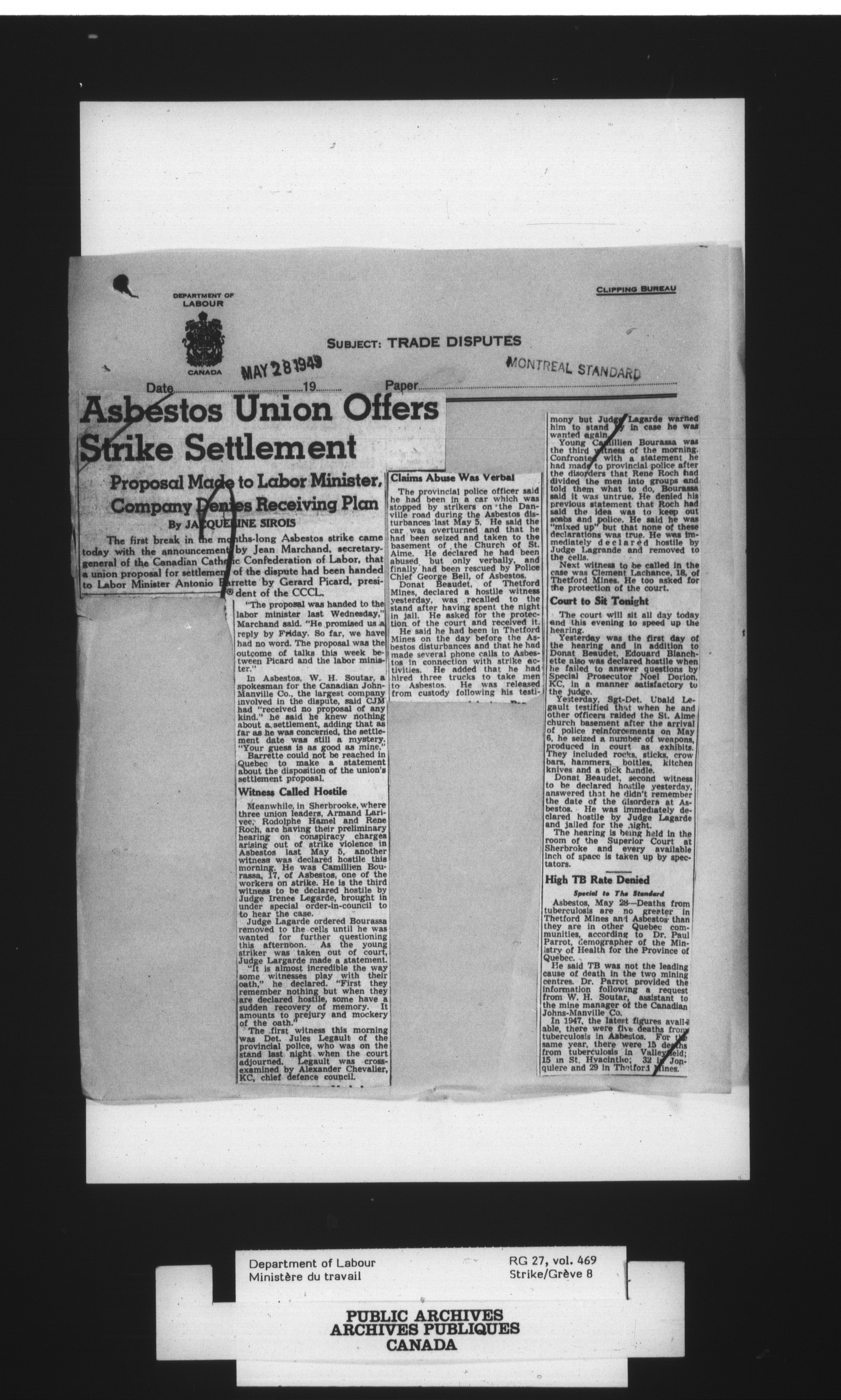 Department of Labour, Economics and Research Branch : Strikes and lockout files - 4099