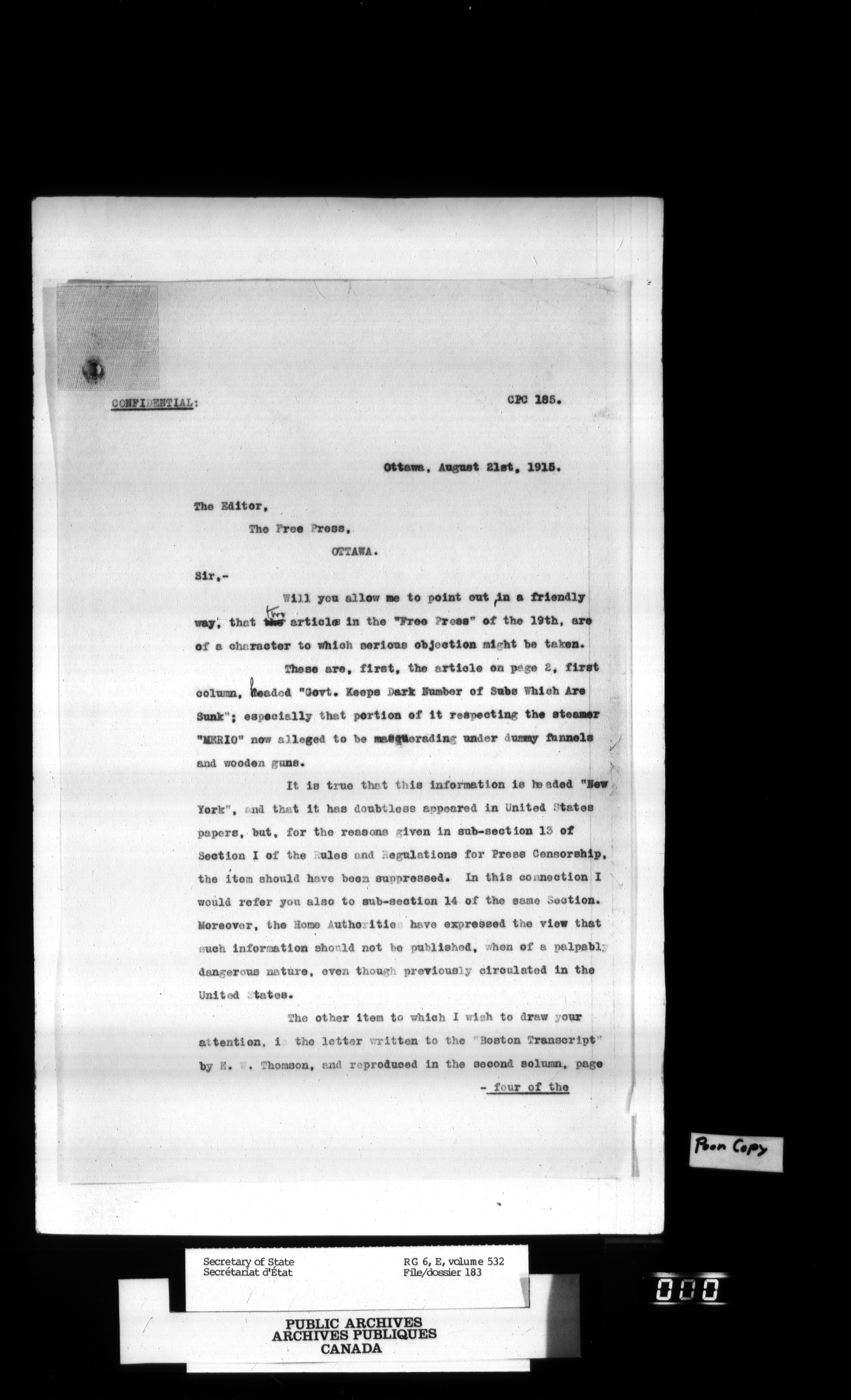 Secretary of State : Chief Press Censor - 41