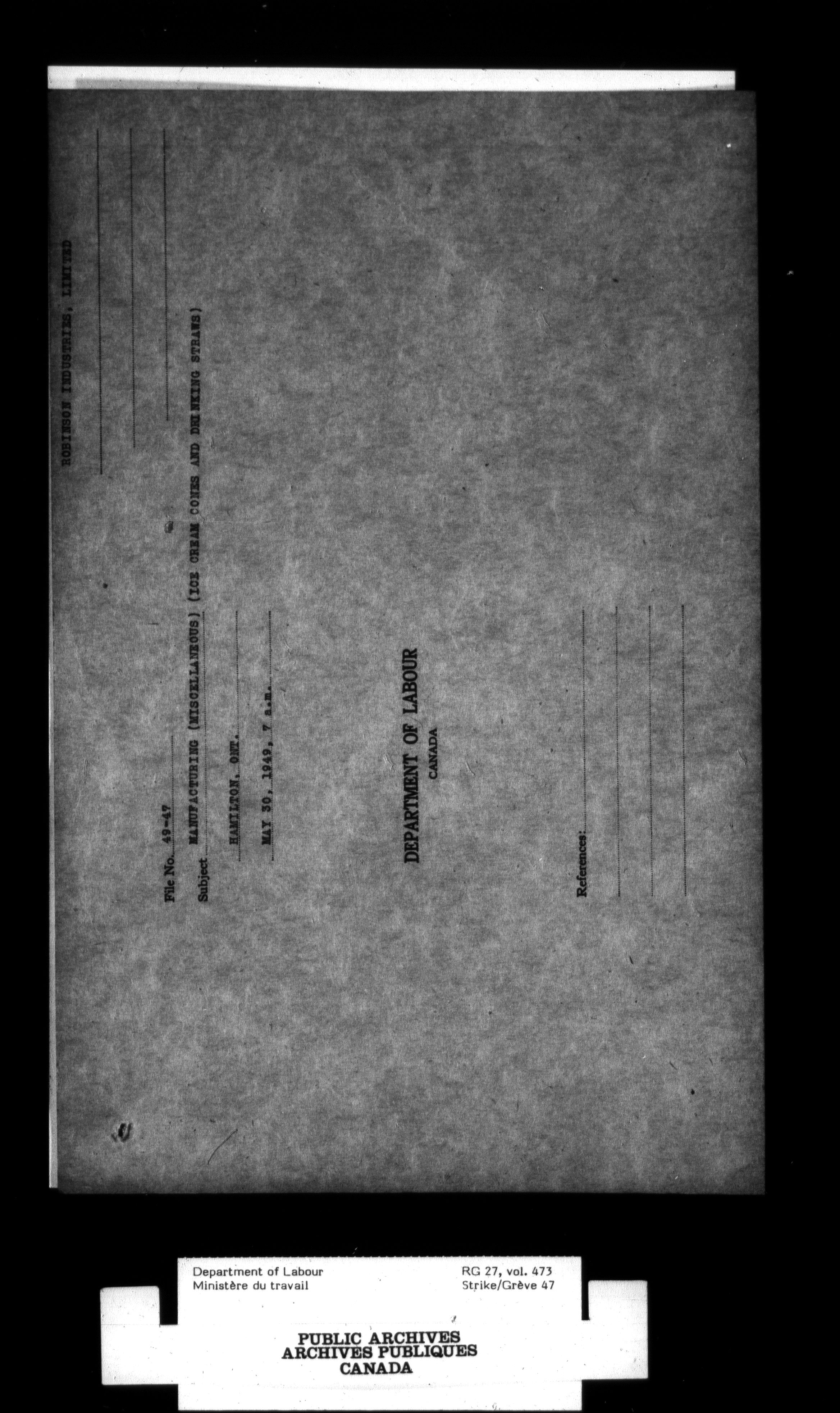 Department of Labour, Economics and Research Branch : Strikes and lockout files - 4101
