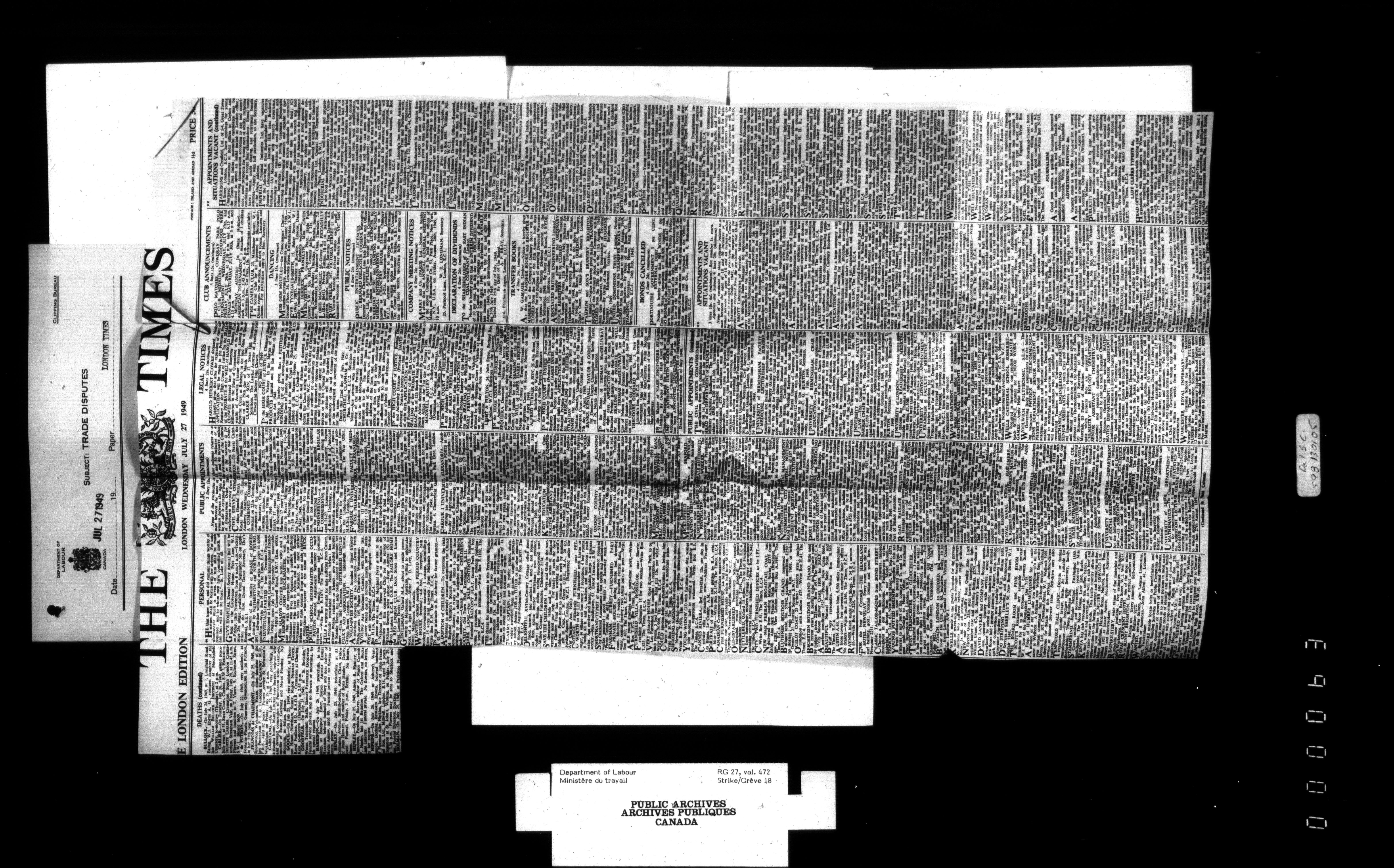 Department of Labour, Economics and Research Branch : Strikes and lockout files - 4101