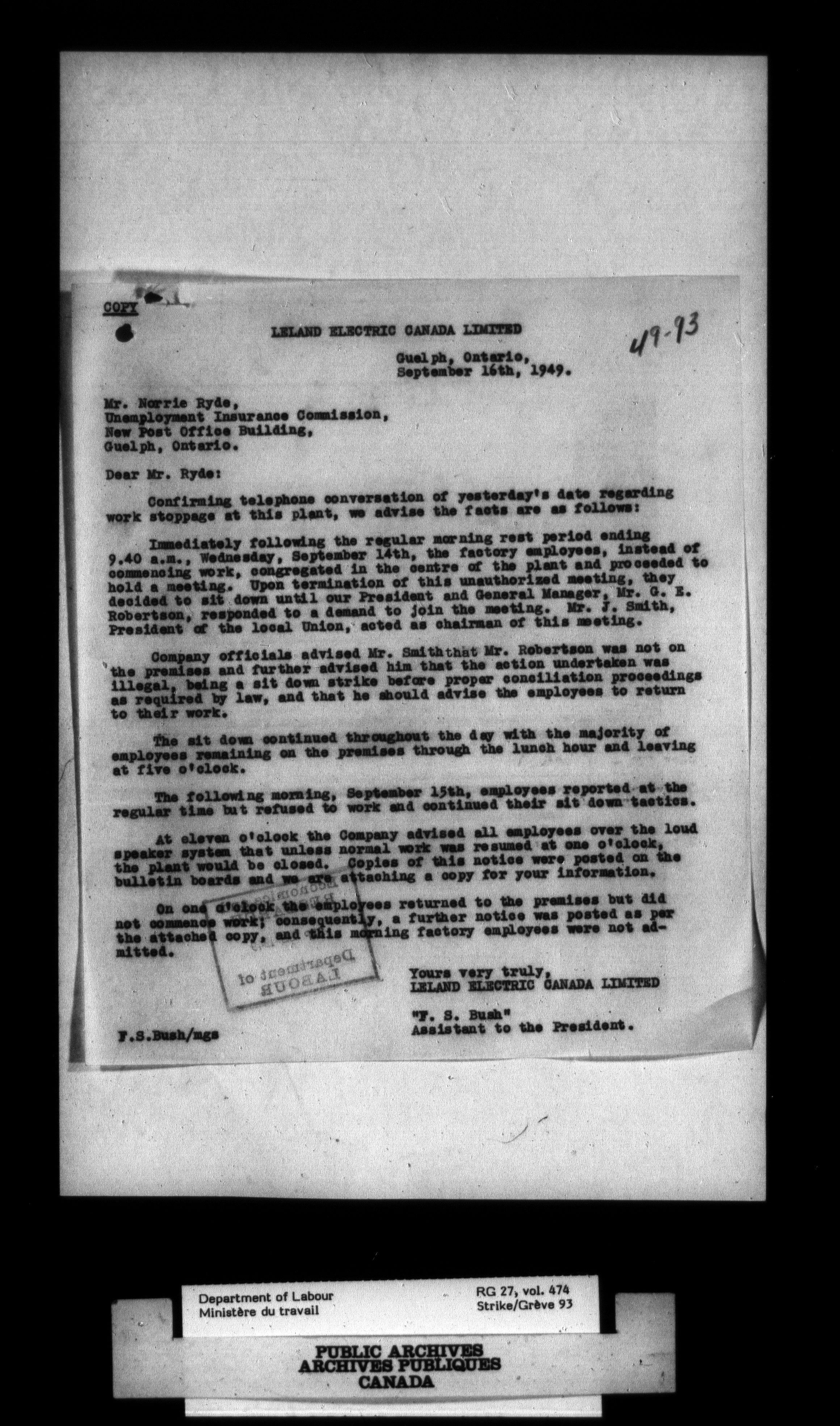 Department of Labour, Economics and Research Branch : Strikes and lockout files - 4102