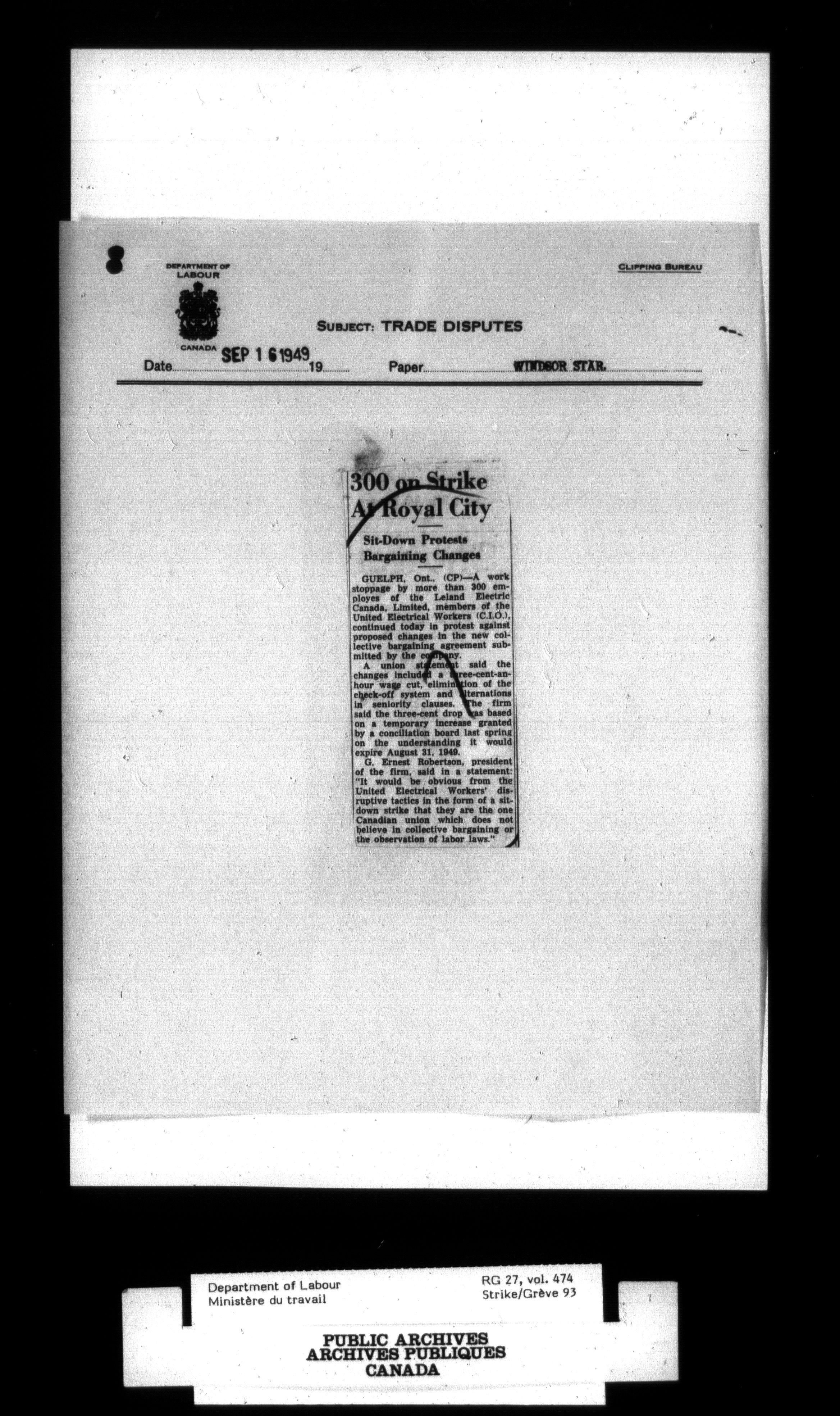 Department of Labour, Economics and Research Branch : Strikes and lockout files : T-4102