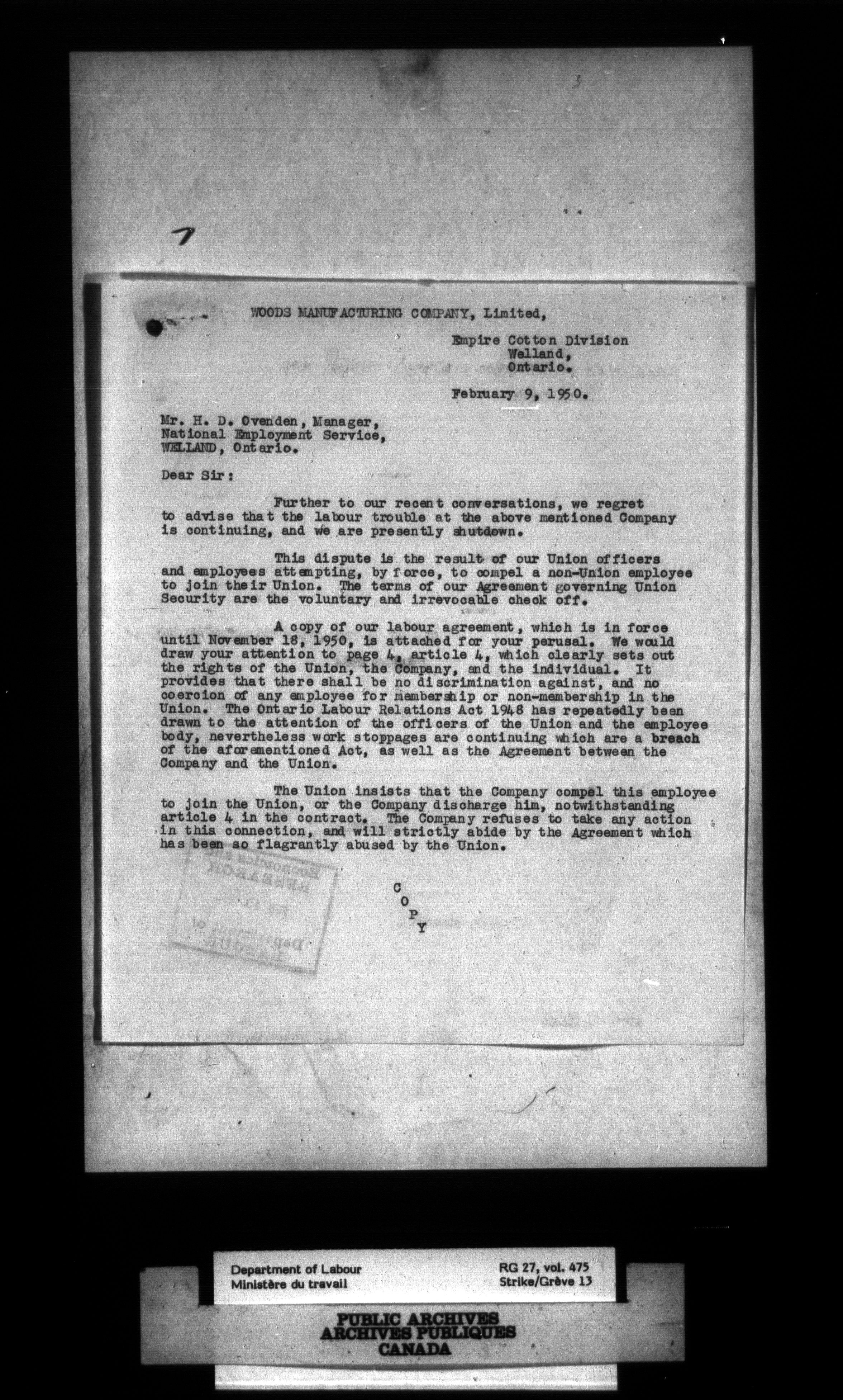 Department of Labour, Economics and Research Branch : Strikes and lockout files - 4104