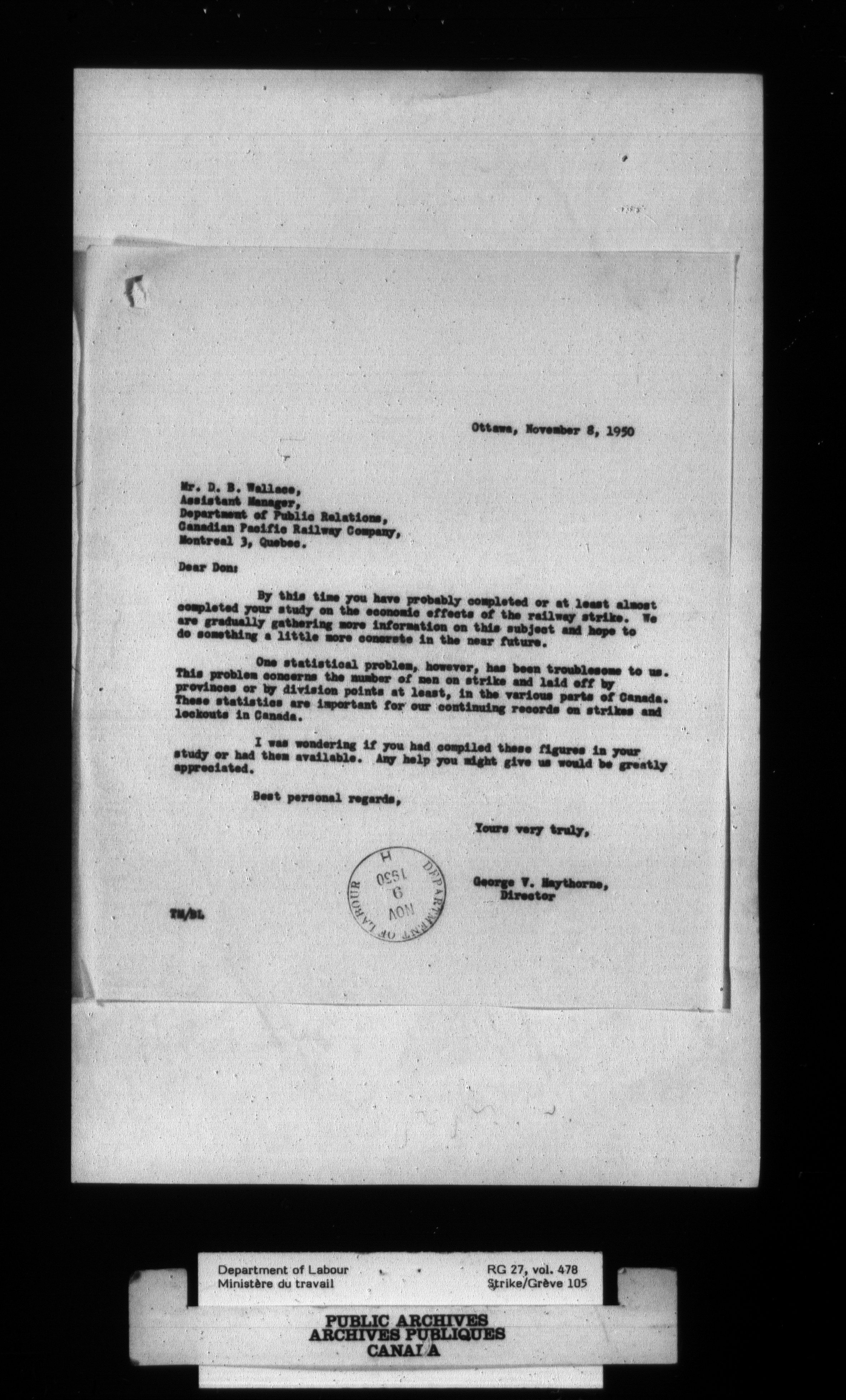 Department of Labour, Economics and Research Branch : Strikes and lockout files - 4105