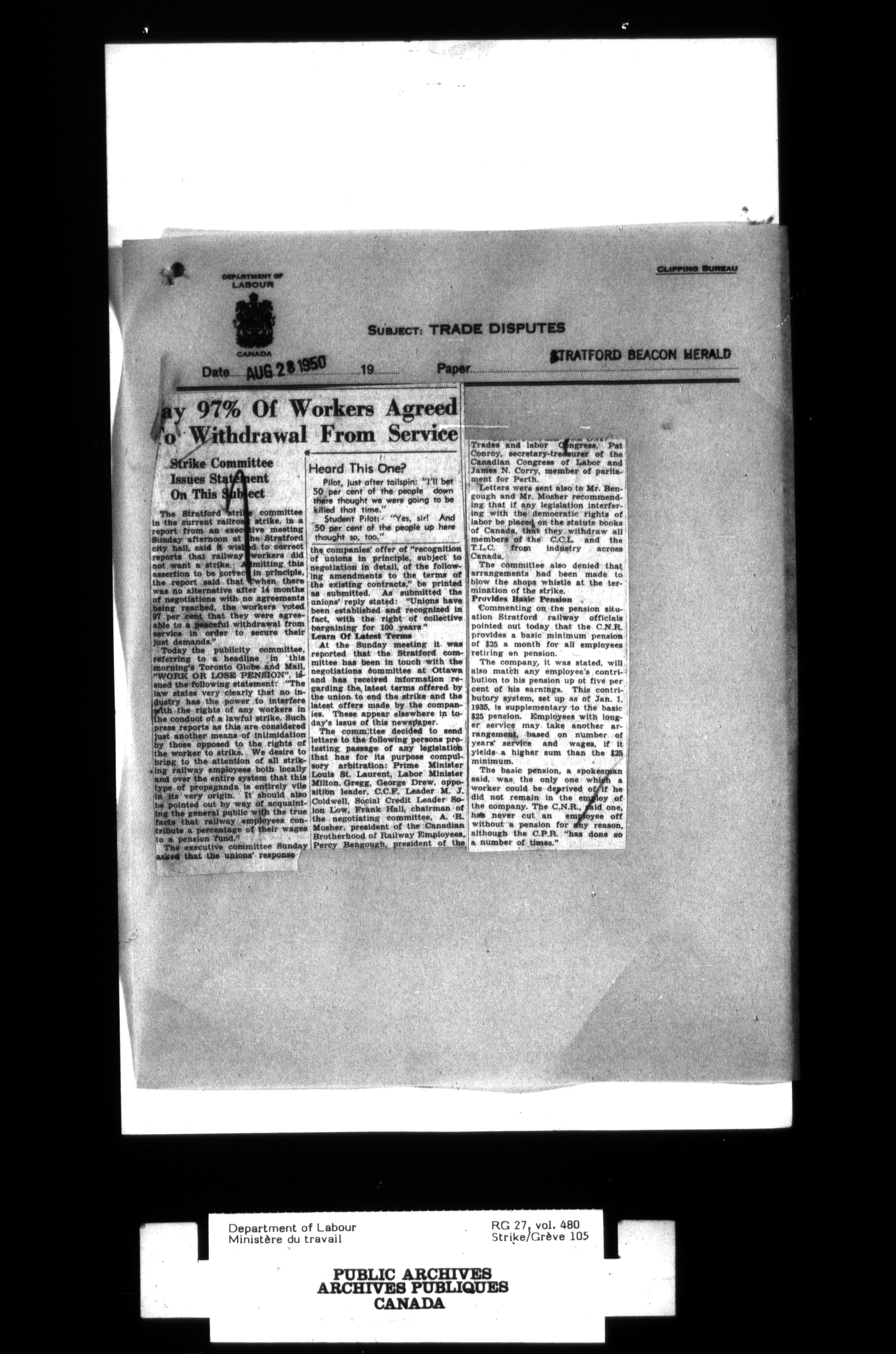 Department of Labour, Economics and Research Branch : Strikes and lockout files - 4108