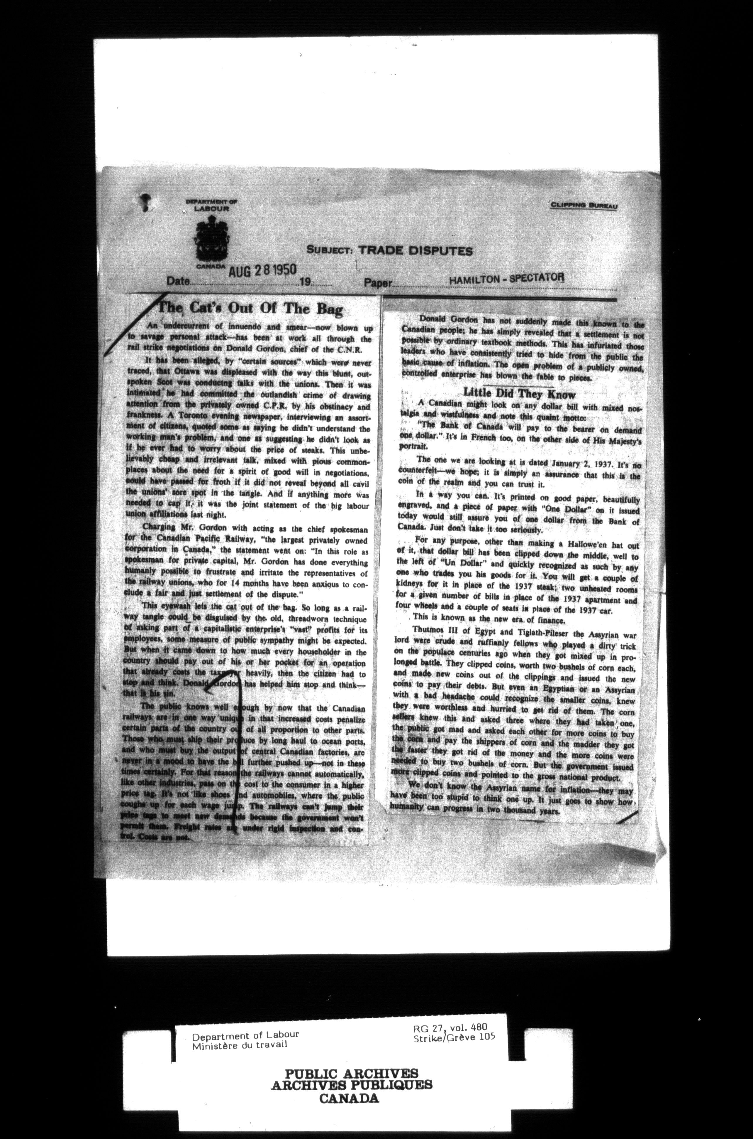 Department of Labour, Economics and Research Branch : Strikes and lockout files : T-4108