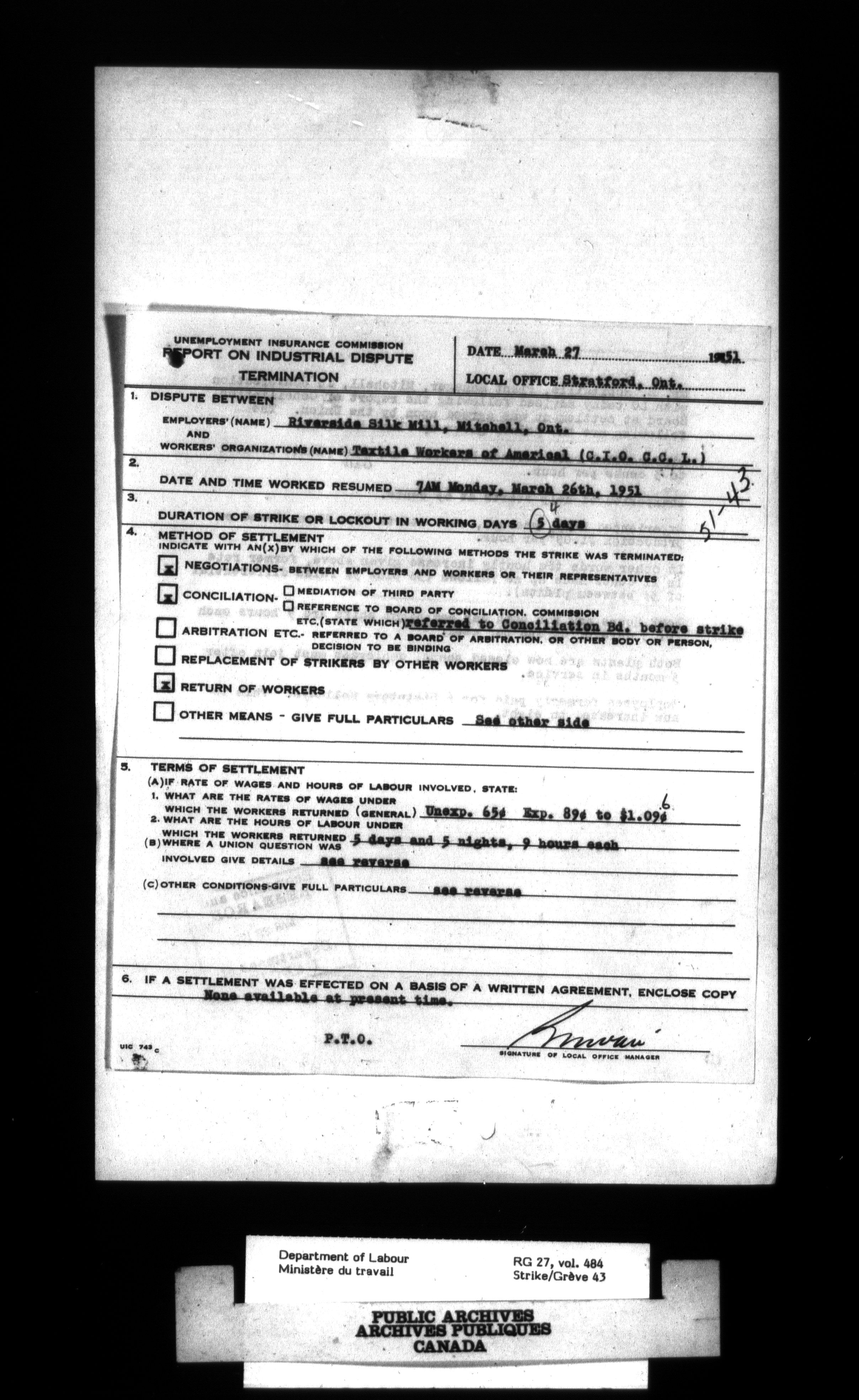Department of Labour, Economics and Research Branch : Strikes and lockout files : T-4110