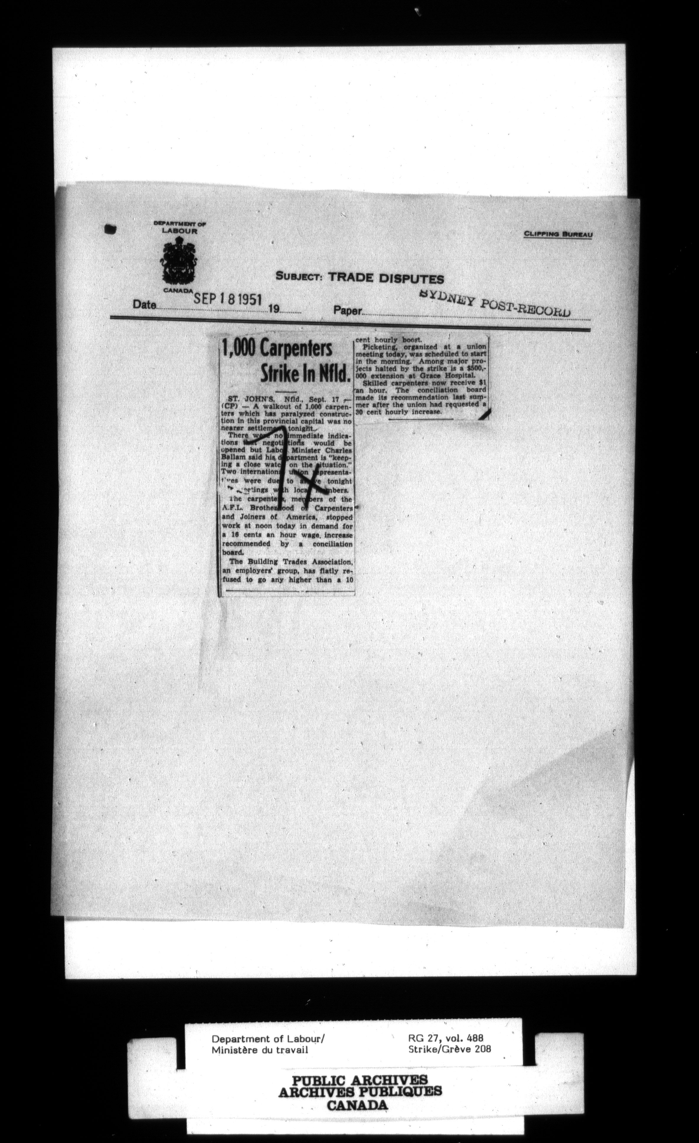 Department of Labour, Economics and Research Branch : Strikes and lockout files - 4113