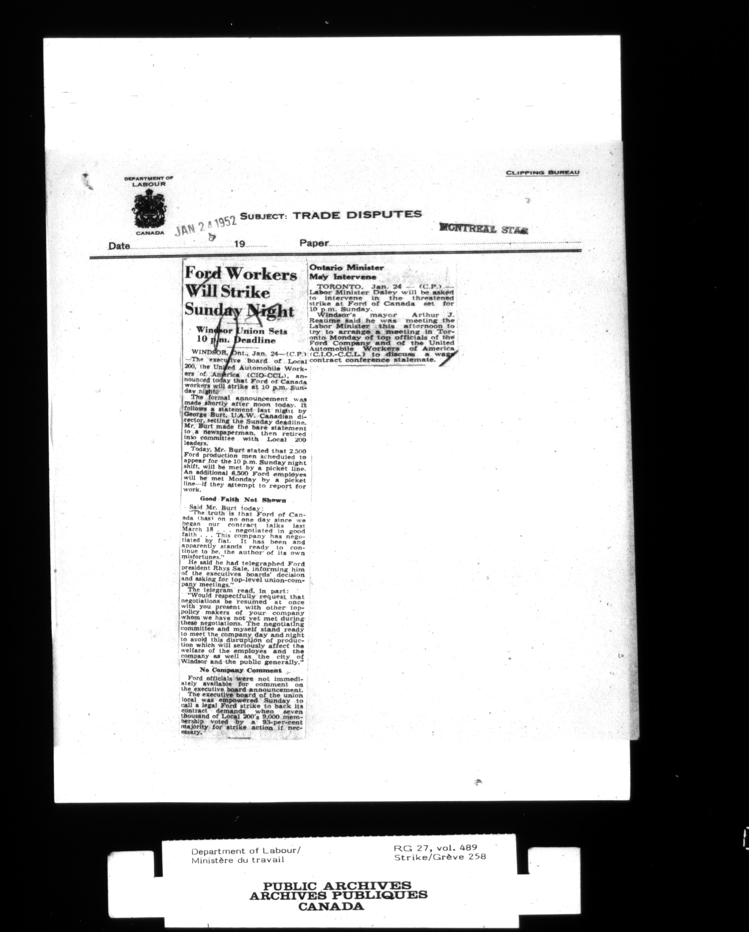Department of Labour, Economics and Research Branch : Strikes and lockout files - 4114