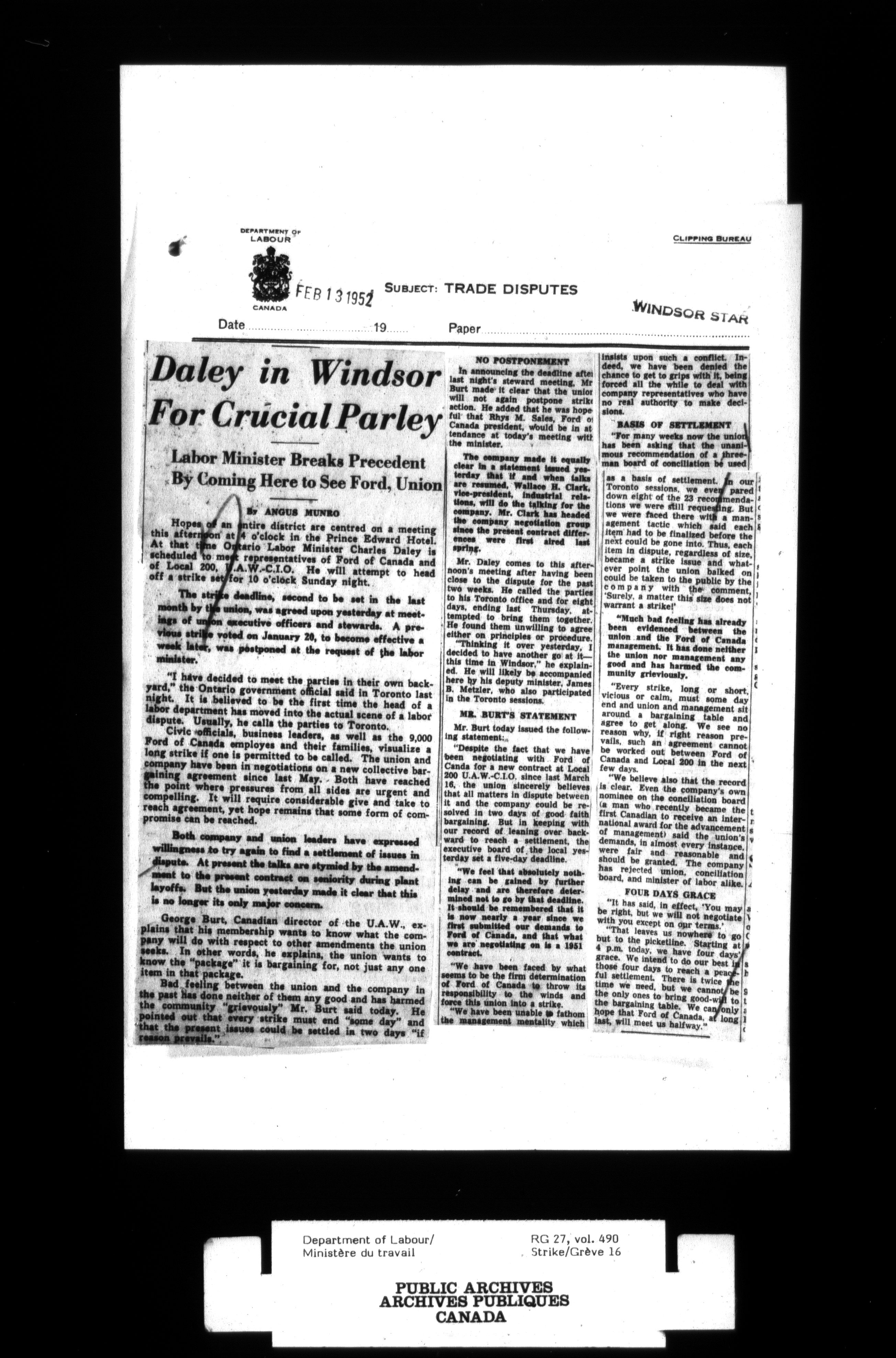 Department of Labour, Economics and Research Branch : Strikes and lockout files - 4115