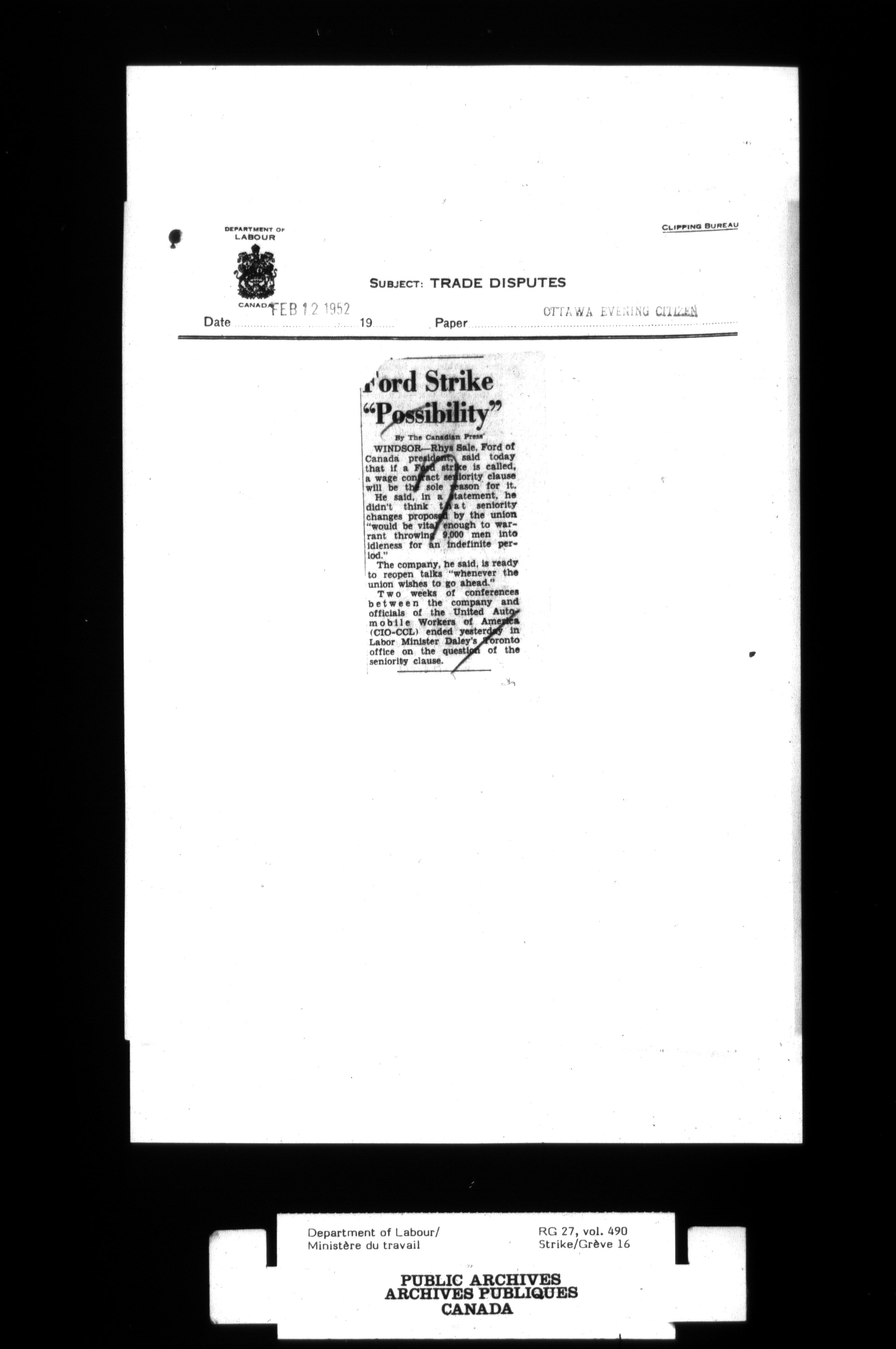 Department of Labour, Economics and Research Branch : Strikes and lockout files - 4115