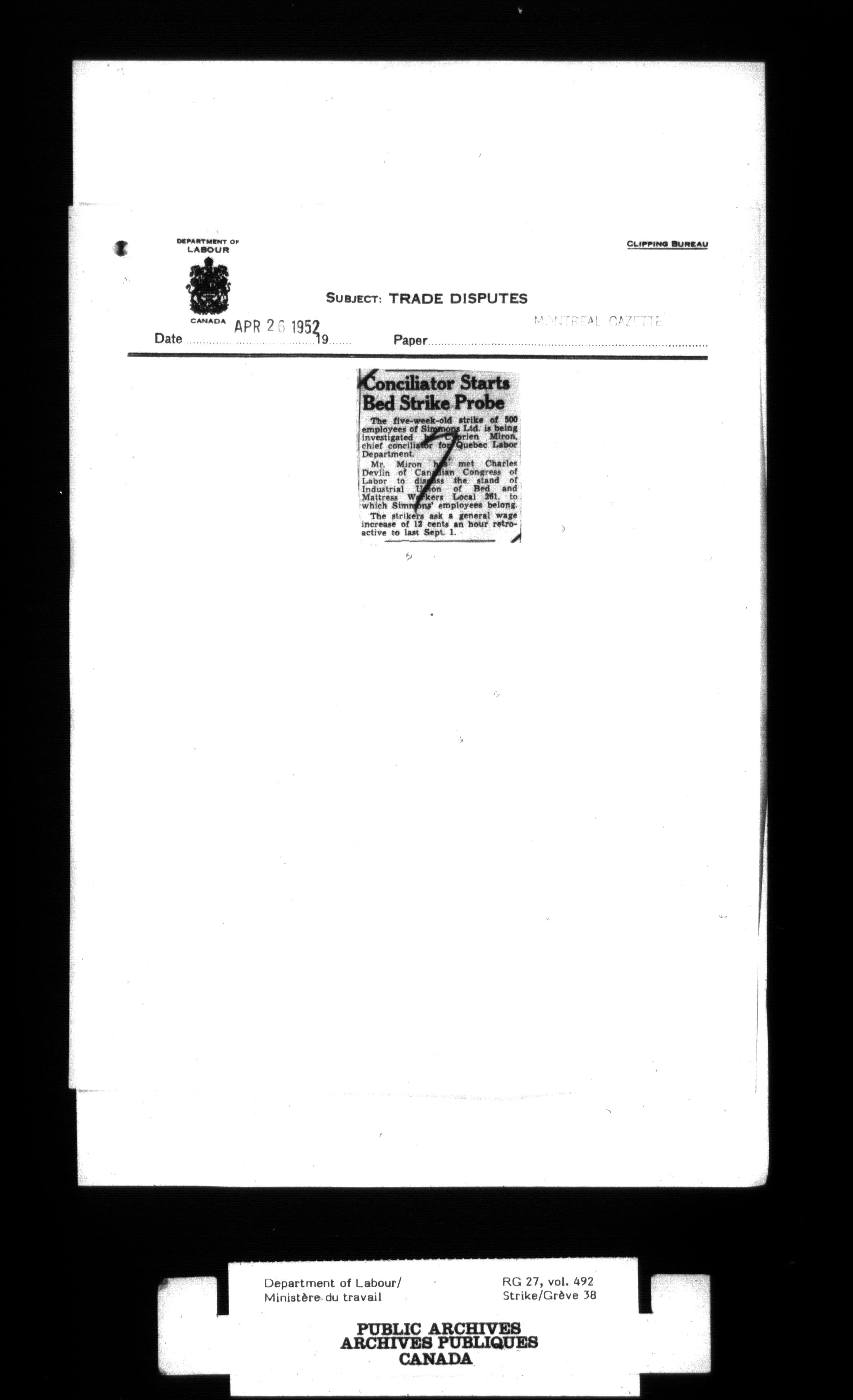 Department of Labour, Economics and Research Branch : Strikes and lockout files - 4116