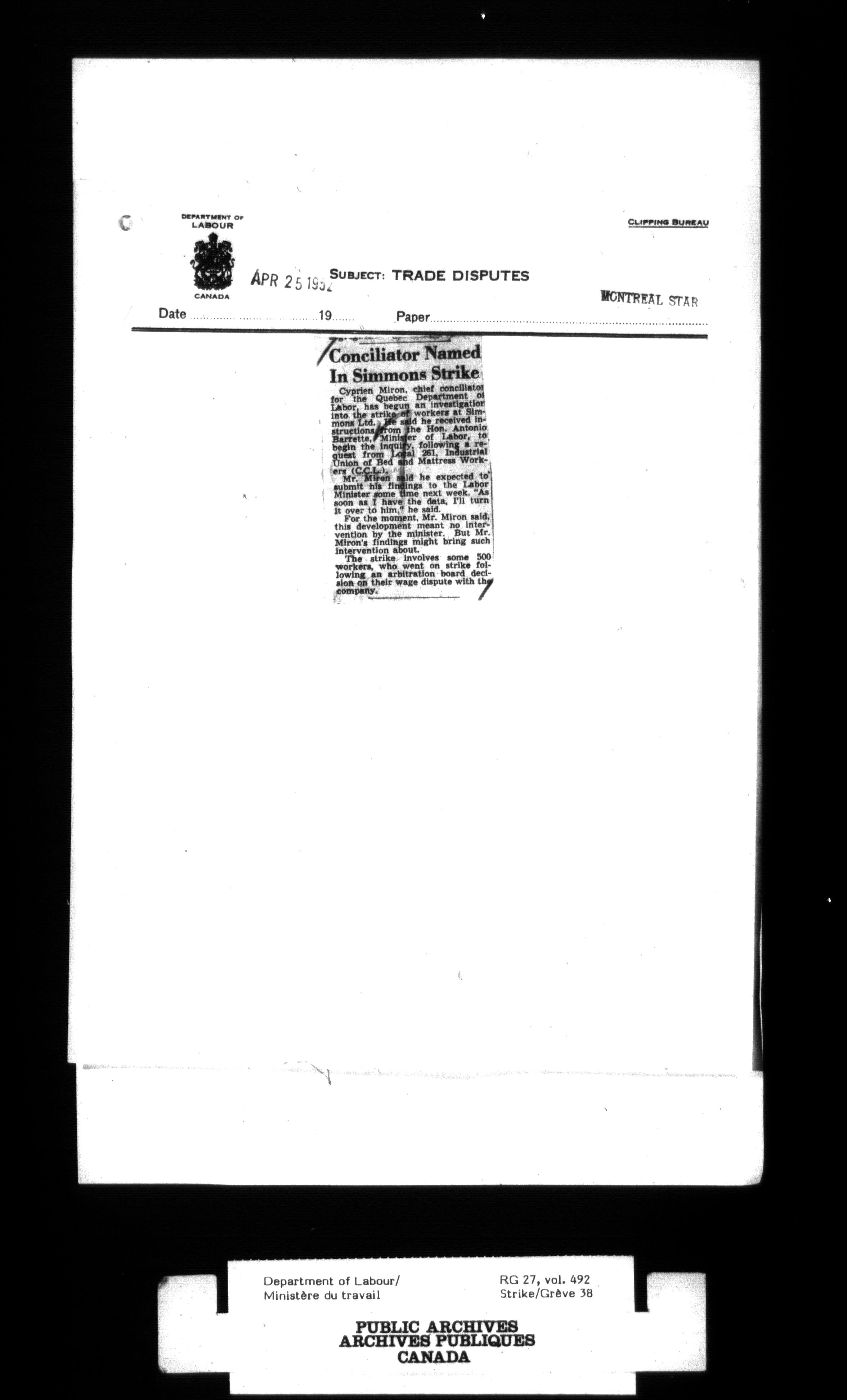 Department of Labour, Economics and Research Branch : Strikes and lockout files - 4116