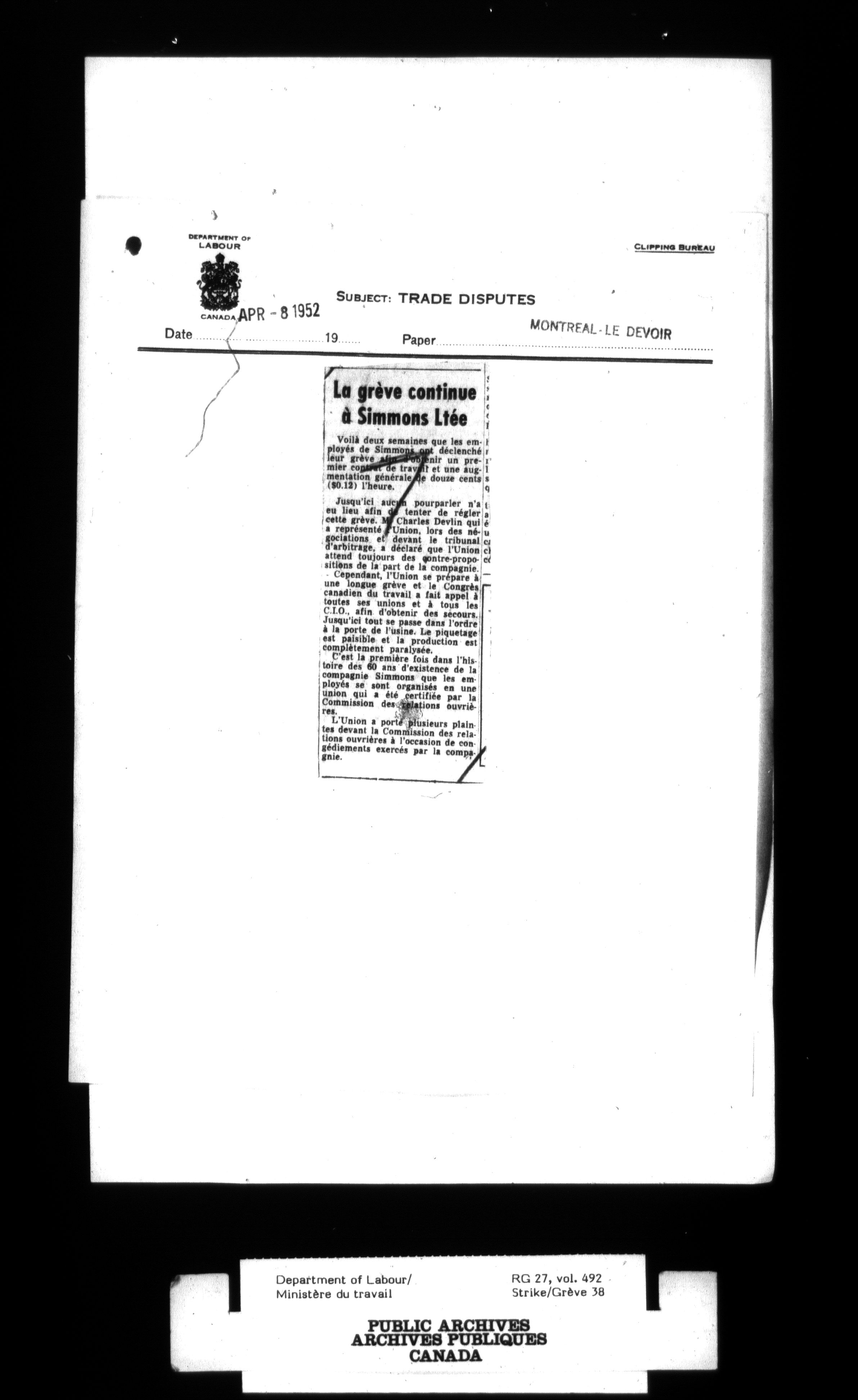 Department of Labour, Economics and Research Branch : Strikes and lockout files - 4116
