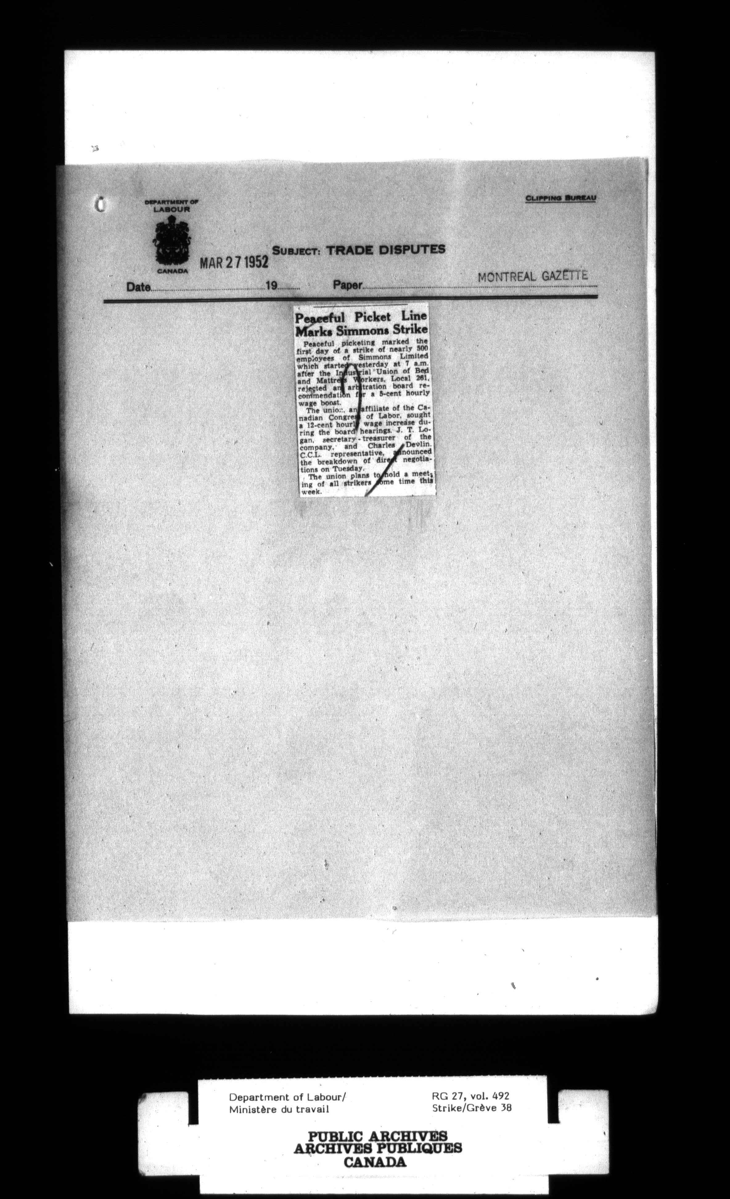 Department of Labour, Economics and Research Branch : Strikes and lockout files - 4116