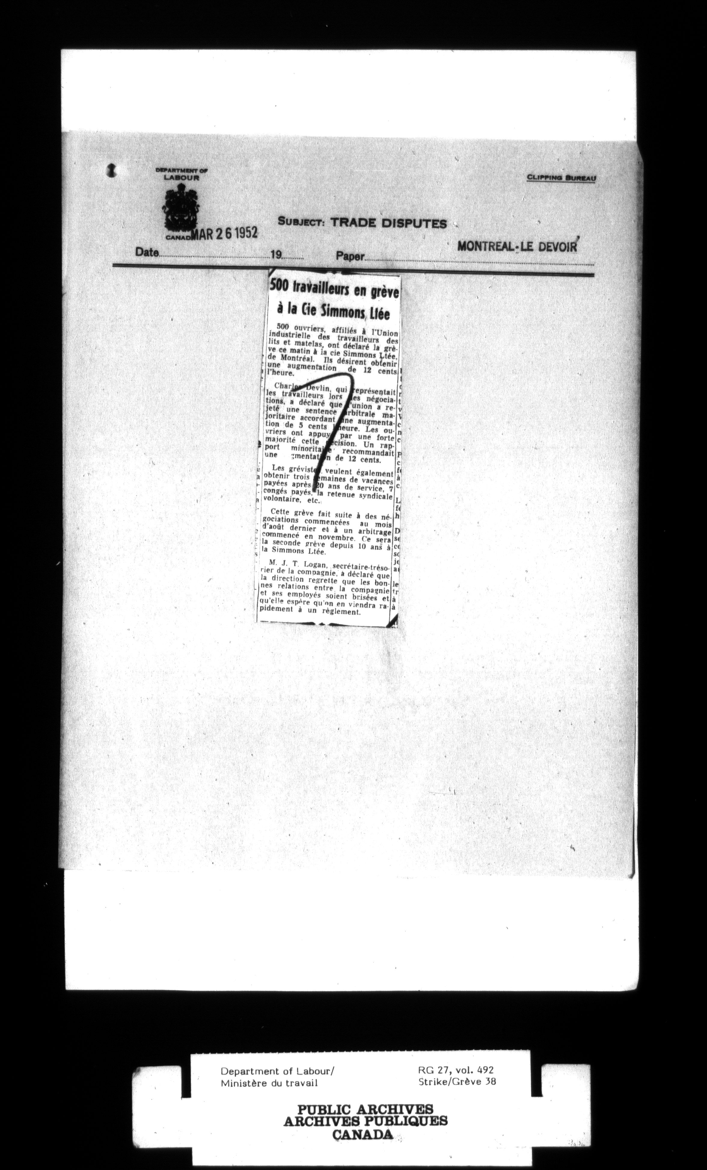 Department of Labour, Economics and Research Branch : Strikes and lockout files - 4116