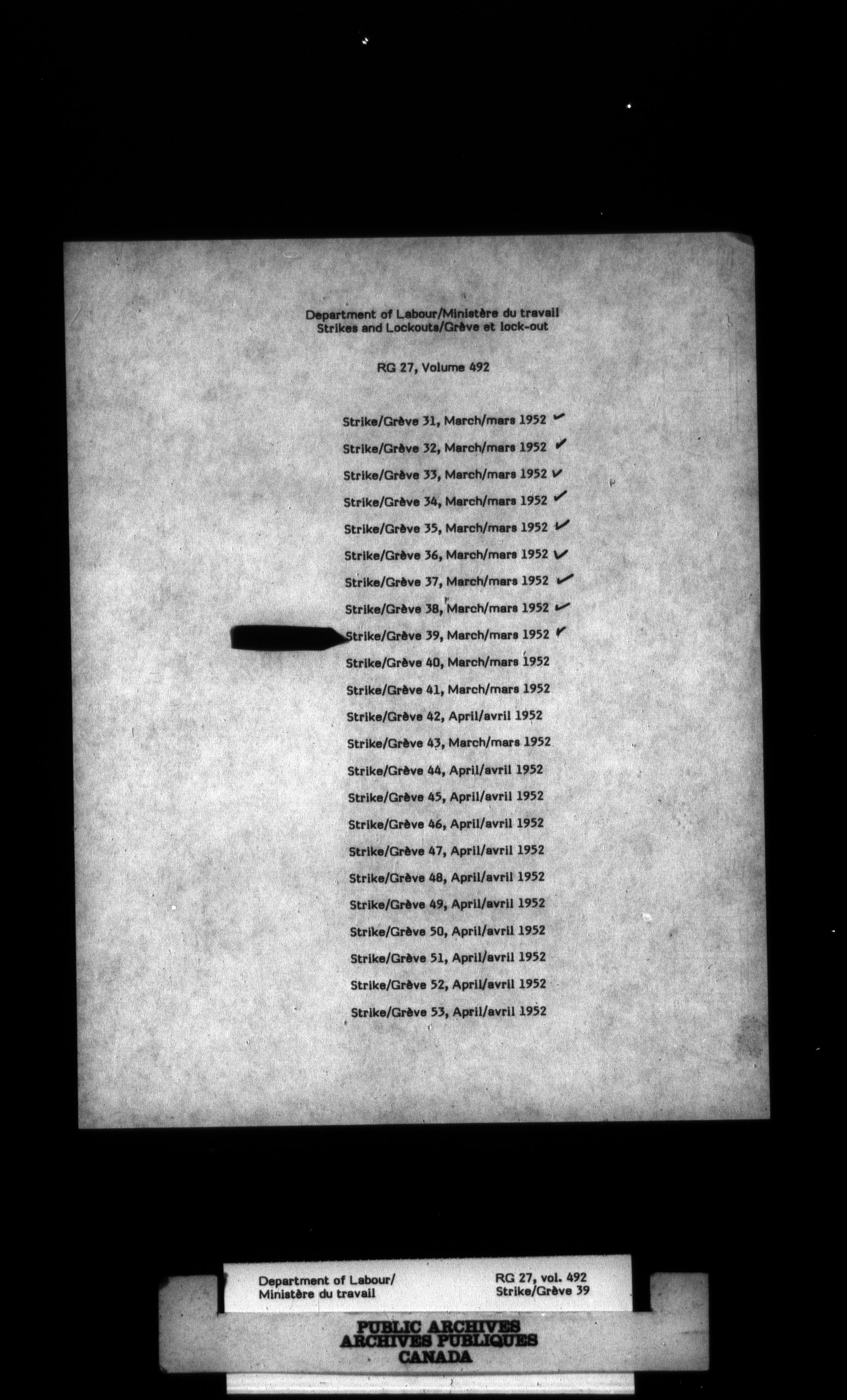 Department of Labour, Economics and Research Branch : Strikes and lockout files - 4116